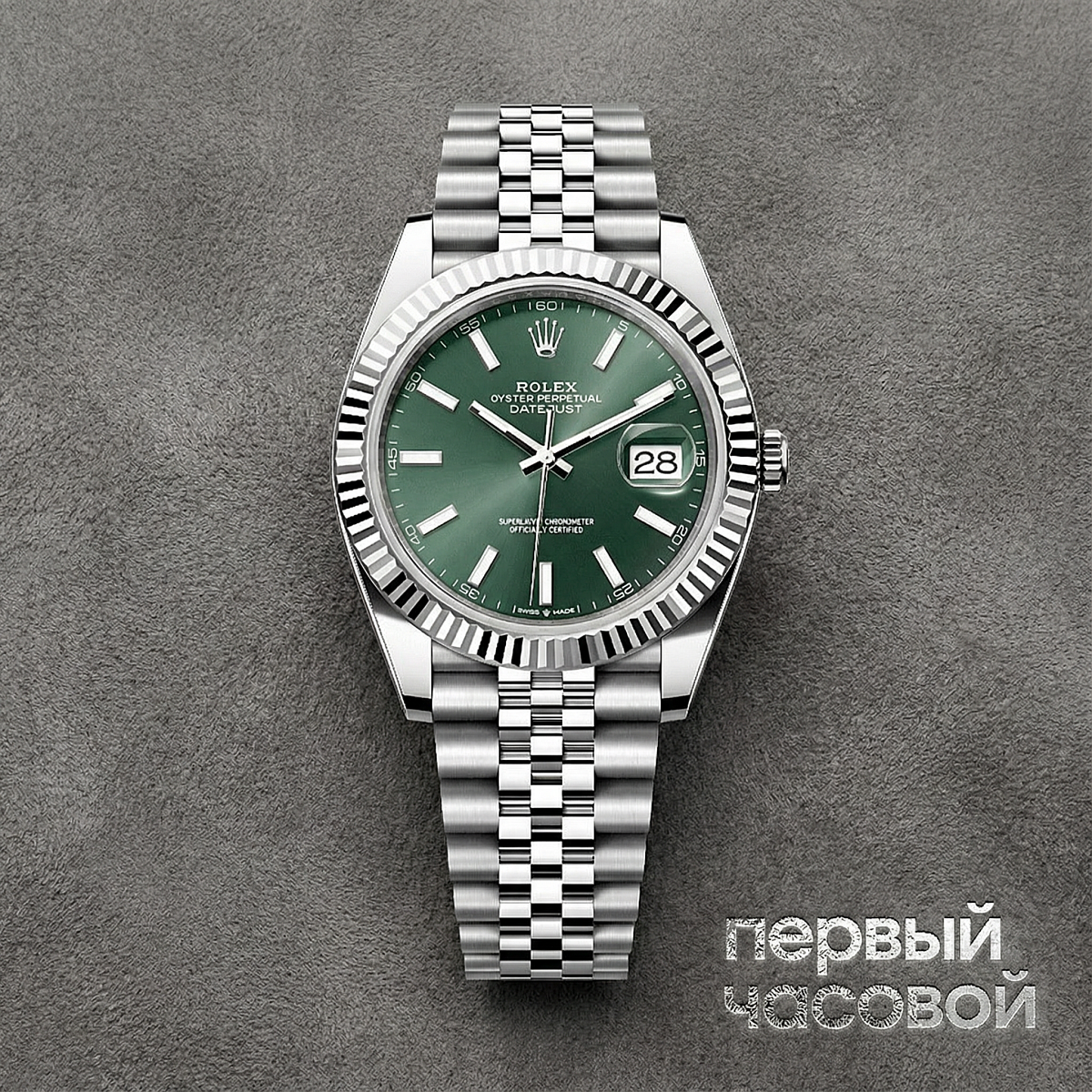 «Скажу прямо: Mint Green — это лучшее, что случилось с Datejust за последние годы, не цвет, а инвестиция. Пока одни гоняются за перегретым Tiffany Blue или классическим синим, этот мятный циферблат тихо набирает вес и выглядит на запястье куда интереснее — свежо, но без клоунады. У нас свежий экземпляр 2025 года, полный комплект (фулл-сет) и официальная гарантия, так что вопрос ликвидности здесь закрыт.