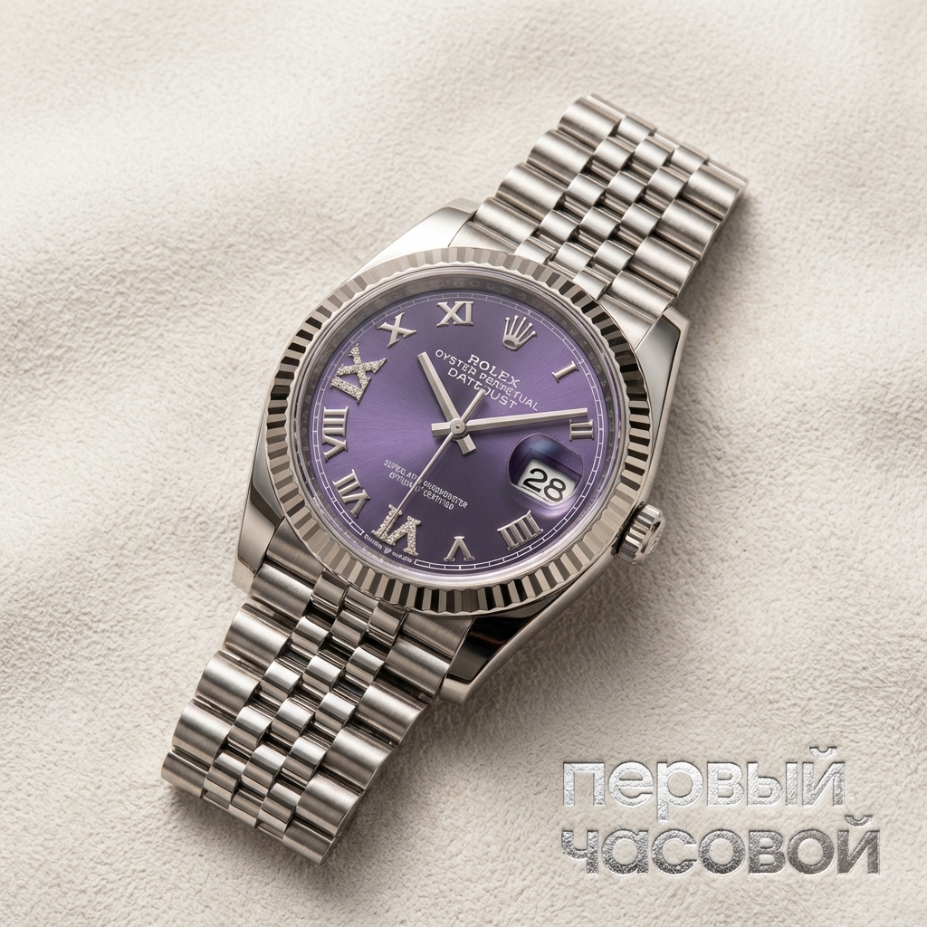 Давайте сразу к делу. Datejust в корпусе 36 миллиметров — это единственно правильный размер для этой модели, всё остальное — компромисс в угоду моде. Перед нами референс 126234, и это важная деталь: здесь безель из белого золота, а не стальной, как на дешевых версиях. Золото дает тот самый «дорогой» блеск, который не мутнеет со временем и четко разделяет часы на спортивные и статусные.