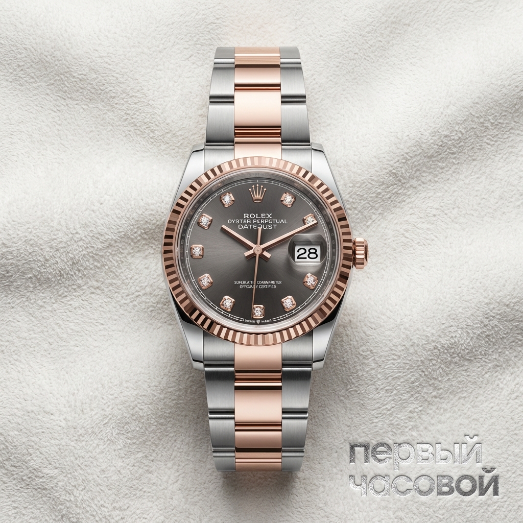 Rolex Datejust 36 представляет собой эталон классической часовой архитектуры, реализованный в биметаллической концепции Everose Rolesor. Геометрия корпуса диаметром 36 мм объединяет в себе утилитарную прочность стали Oystersteel и благородную эстетику 18-каратного золота Everose — запатентованного сплава, устойчивого к потере цвета и коррозии. Рифленый безель, исторически служивший для герметизации корпуса, в данной итерации выполняет функцию светоотражающего элемента, создавая характерную игру бликов.