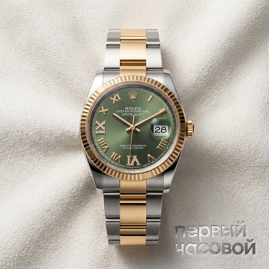 Размер 36 мм — это единственный правильный размер для DJ. Он не пытается казаться спортивным, он просто удобно сидит. Биколор (сталь-золото) на браслете Jubilee — самое практичное решение для ежедневной носки. В отличие от полированного Oyster, на котором видна каждая царапина от воздуха, «Юбилей» скрывает следы эксплуатации годами. Внутри стоит 3235 — надежный механизм с запасом хода 70 часов, проблем с ним нет, обслуживается любым квалифицированным мастером.