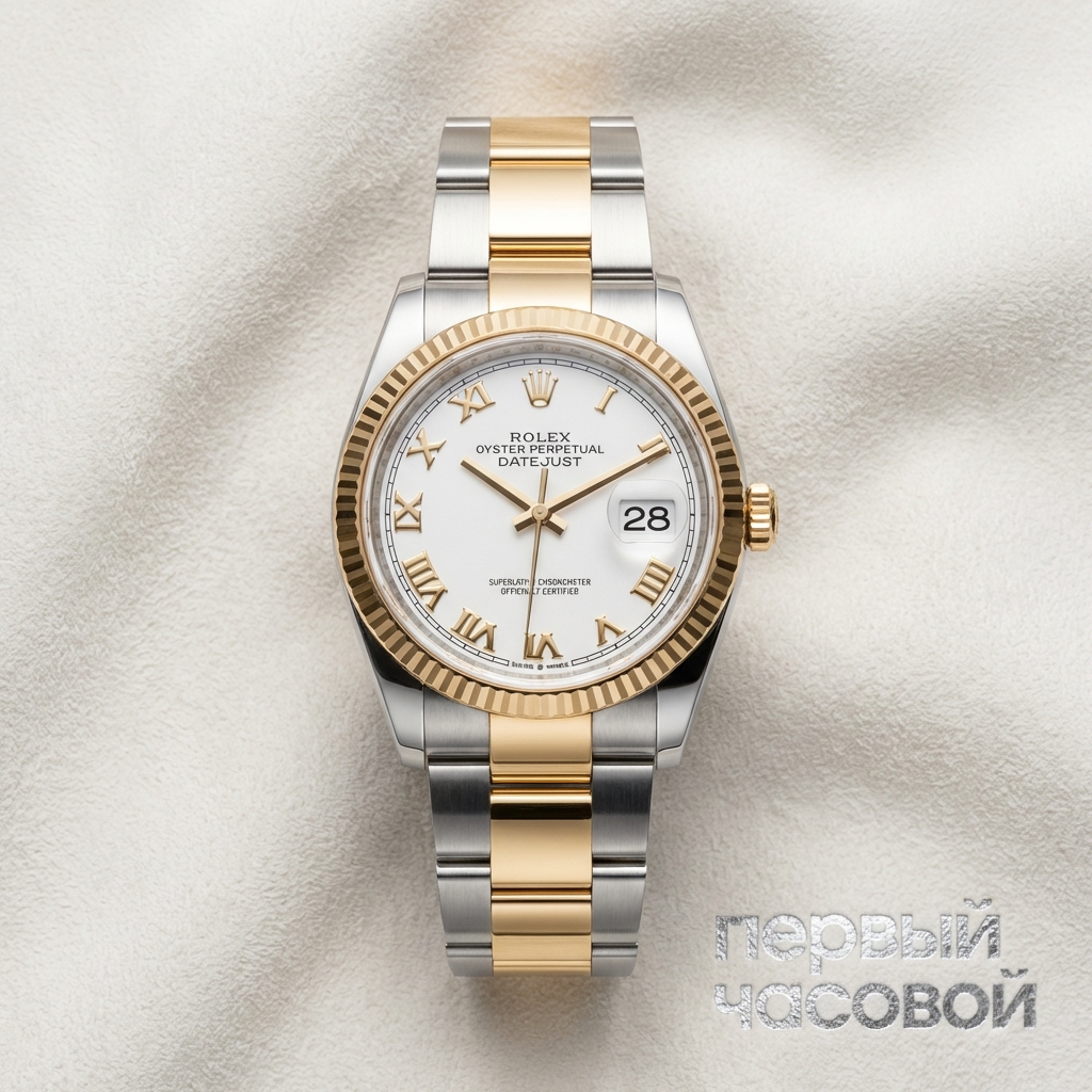 Странный, но выгодный кейс. Перед нами классический биколорный Datejust 36 мм — самая узнаваемая модель бренда, «золотая середина» линейки. Ситуация с конкретным экземпляром нестандартная: часы абсолютно новые, «в глухих пленках», но без коробки и документов. Обычно новые часы теряют бумаги только в серых схемах транзита через границу, но для конечного покупателя это скорее плюс, чем минус. Вы не переплачиваете за «макулатуру», которая будет пылиться в шкафу, получая при этом девственно новое устройство.