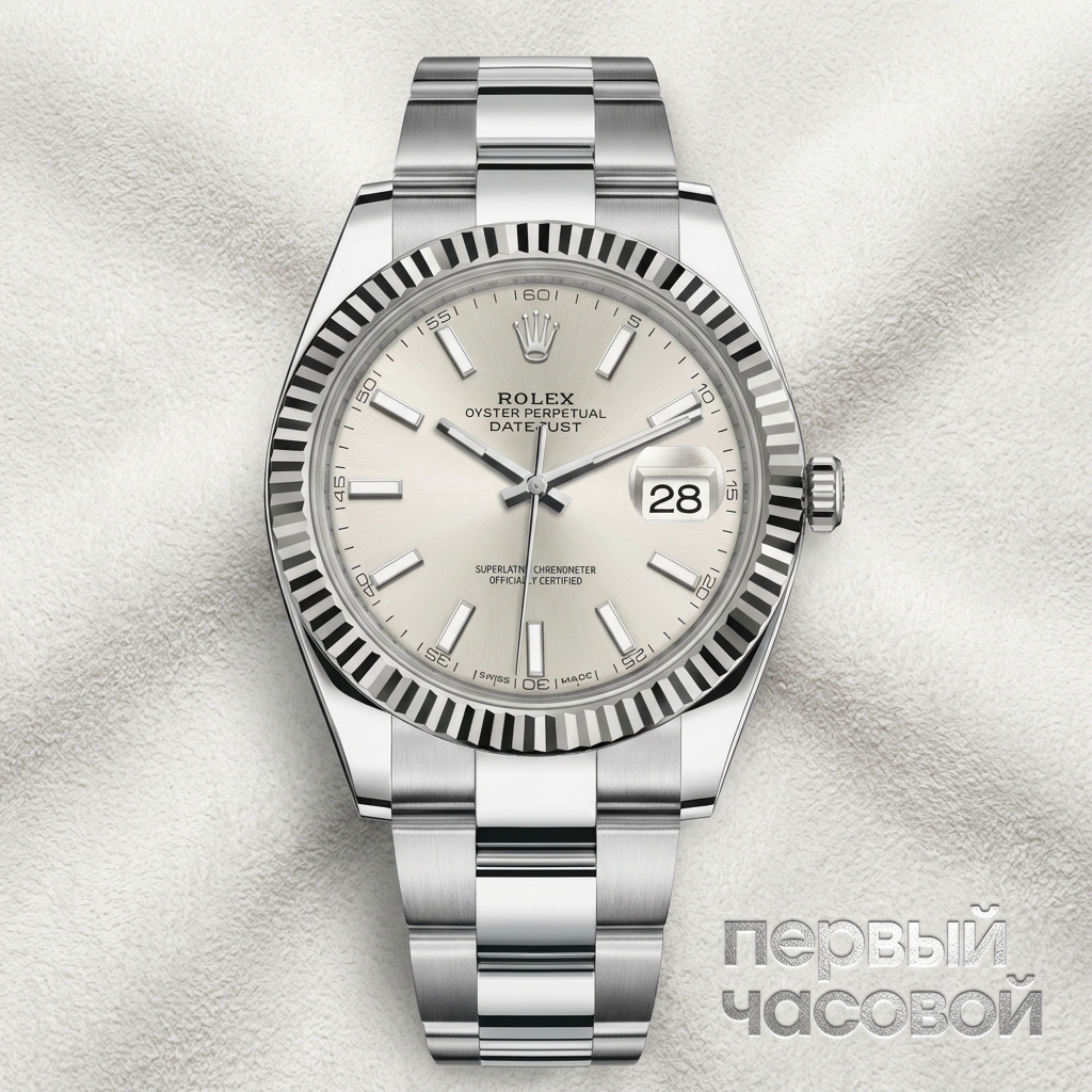Rolex Datejust 41 являет собой эталонный образец современной часовой архитектуры, объединяющий историческое наследие коллекции с актуальными стандартами эргономики. Корпус диаметром 41 мм выполнен в биметаллической технике White Rolesor: средняя часть корпуса и браслет изготовлены из коррозионностойкой стали Oystersteel, в то время как характерный рифленый безель отлит из 18-каратного белого золота. Данный элемент, изначально разработанный для обеспечения герметичности, в современной итерации выполняет эстетическую функцию, создавая уникальную игру света при движении запястья.