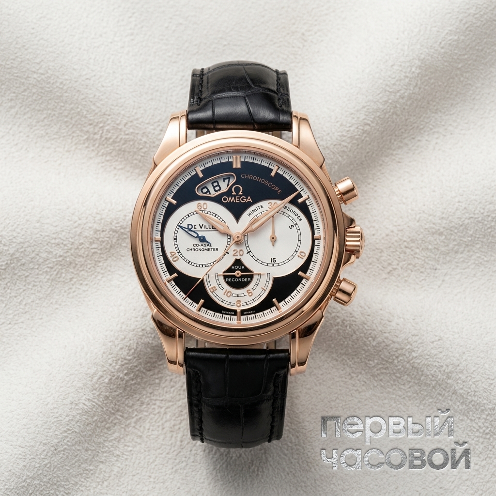 Часы Omega De Ville Chronograph — это образец выверенной геометрии и инженерной строгости, заключенный в массивный корпус из цельного желтого золота диаметром 41 мм.