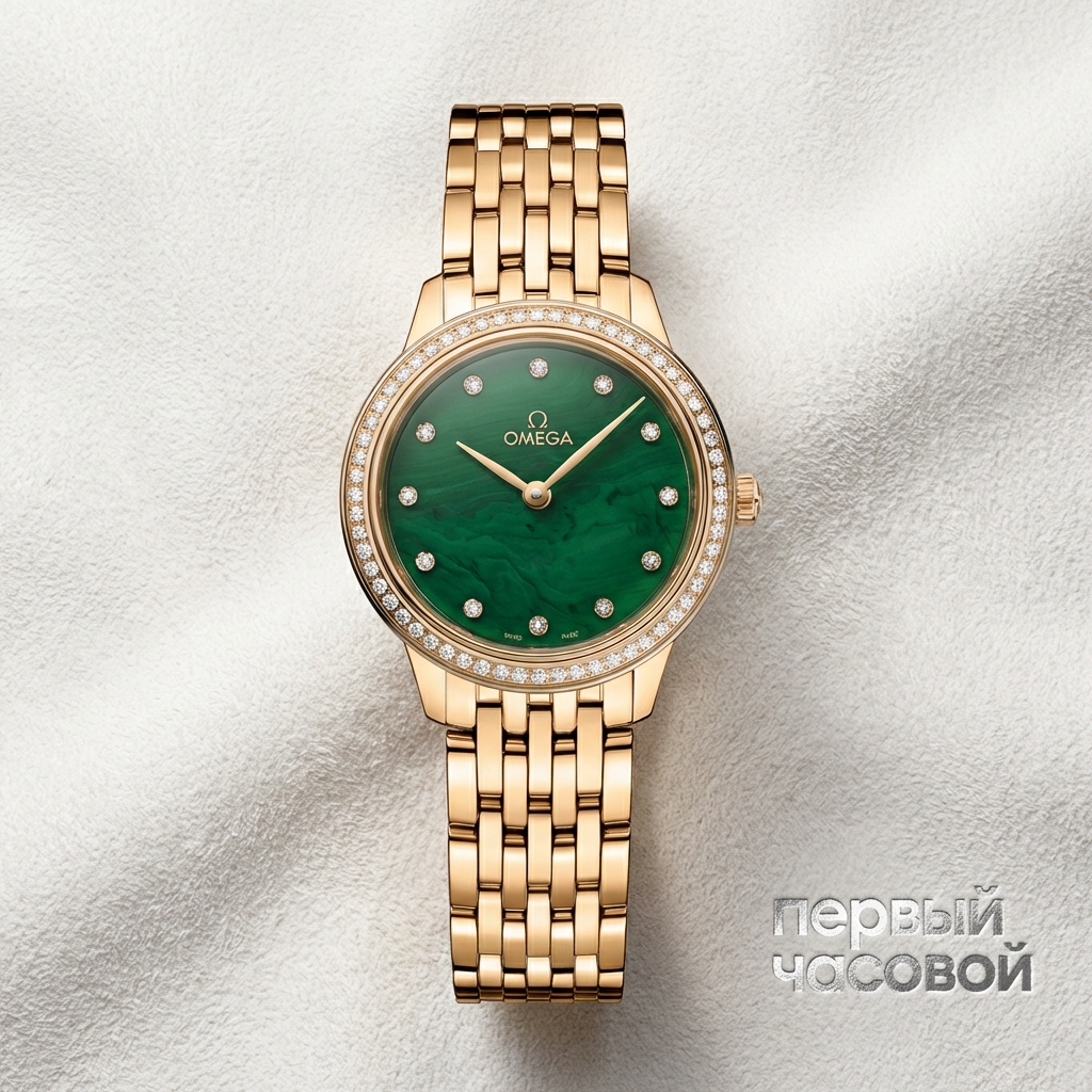 Omega De Ville Prestige воплощает концепцию ювелирного хронометра, выполненного в соответствии с высокими стандартами работы с драгоценными металлами. Корпус диаметром 27,5 мм изготовлен из фирменного сплава Moonshine™ Gold — 18-каратного золота особого состава, отличающегося более бледным, лунным оттенком и повышенной стойкостью к окислению по сравнению с традиционным желтым золотом. Архитектура модели включает фиксированный безель, инкрустированный бриллиантами, которые создают оптический акцент вокруг циферблата. Сам циферблат также выполнен из золота Moonshine™ с радиальным сатинированием и оснащен бриллиантовыми часовыми метками, сохраняя монохромную эстетику изделия. Внутри установлен кварцевый калибр Omega 4061 с функцией Long Life, скрытый за сплошной задней крышкой с гравировкой медальона Бога Хроноса. Водонепроницаемость корпуса ограничена 30 метрами, что классифицирует модель как аксессуар для сухой среды.