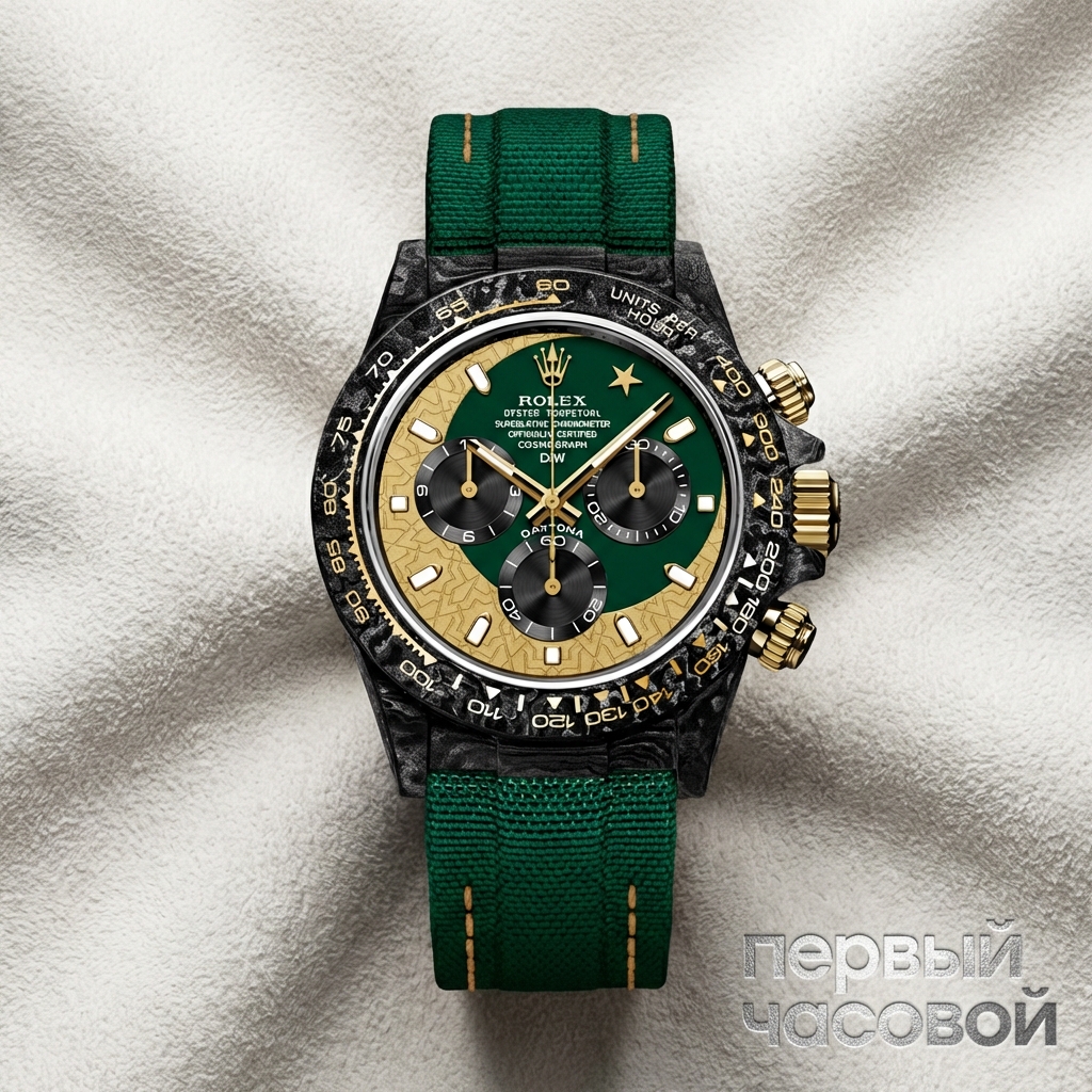 Честный взгляд на тюнинг: это часы для тех, кто устал от тяжести золота и полированной стали. Карбоновый корпус от DiW делает эту «Дайтону» пугающе легкой — на руке вес практически отсутствует, что поначалу сбивает с толку, но в эксплуатации оказывается чертовски удобным. Материал корпуса тактильно теплый и, в отличие от металла, не собирает мелкую «паутинку» царапин в первый же день носки.