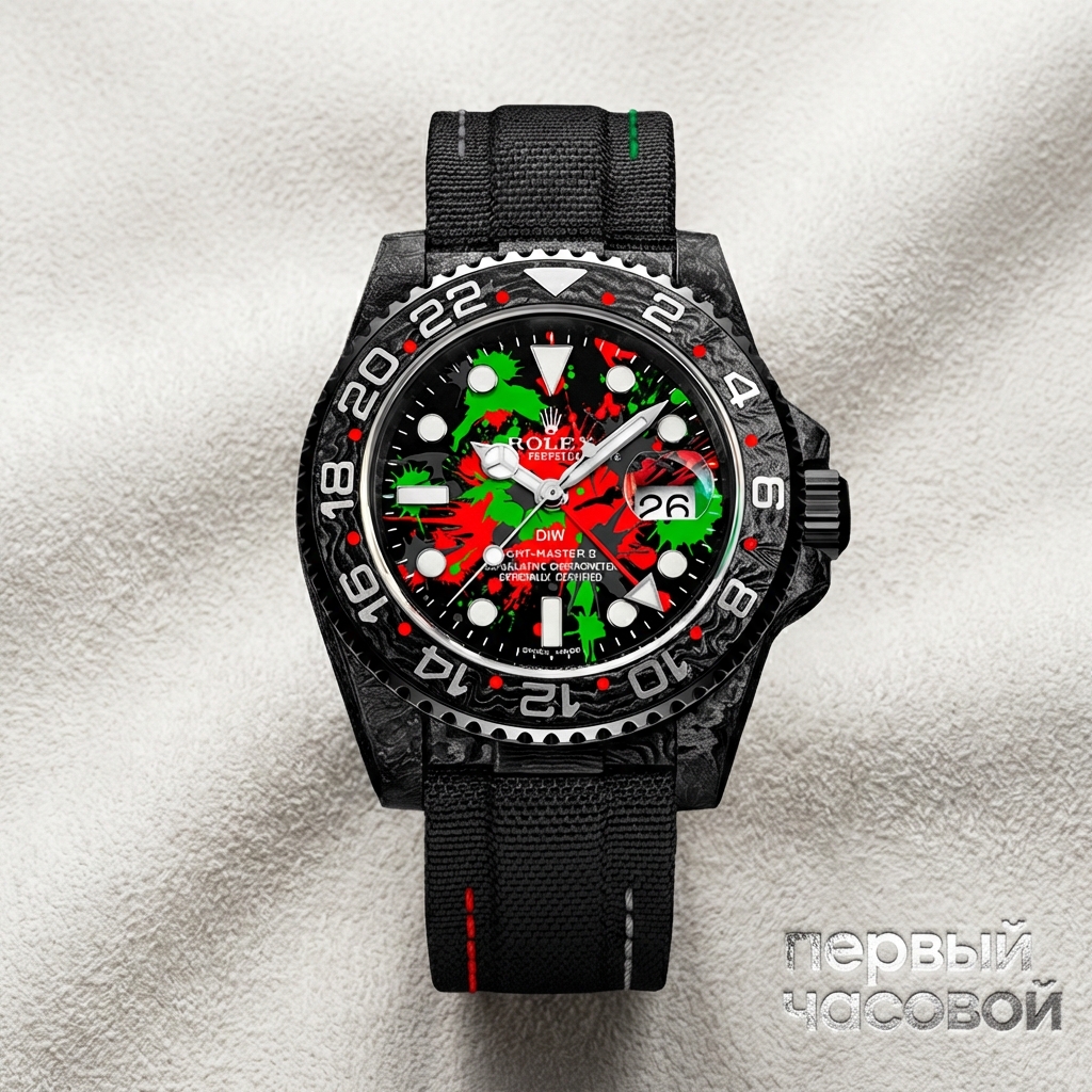 Карбоновый Rolex от DiW — это специфический жанр для тех, кто перерос базовую линейку и ищет новые тактильные ощущения. Главный козырь этих часов не в дизайне, а в физике: на запястье они практически не ощущаются. После тяжелой стали или золота этот вес кажется чем-то нереальным, и к такому комфорту привыкаешь мгновенно.