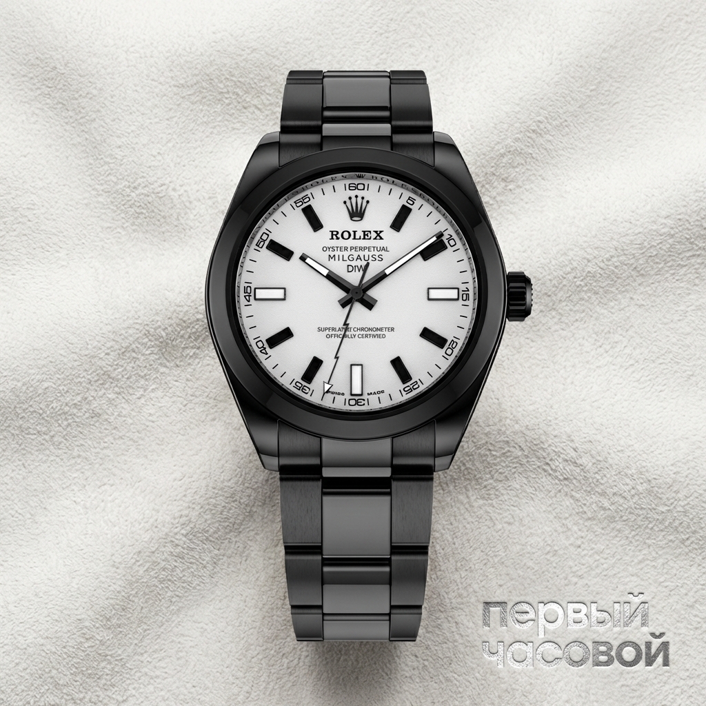 Суть предложения. Будем честны: перед нами продукт глубокого тюнинга на базе Rolex Milgauss от ателье DiW. Это выбор не для новичка, а для человека, который устал от стоковых моделей и «инкубаторского» люкса. Вы платите не за бренд в классическом понимании, а за возможность носить на руке то, чего нет у 99% владельцев Rolex.