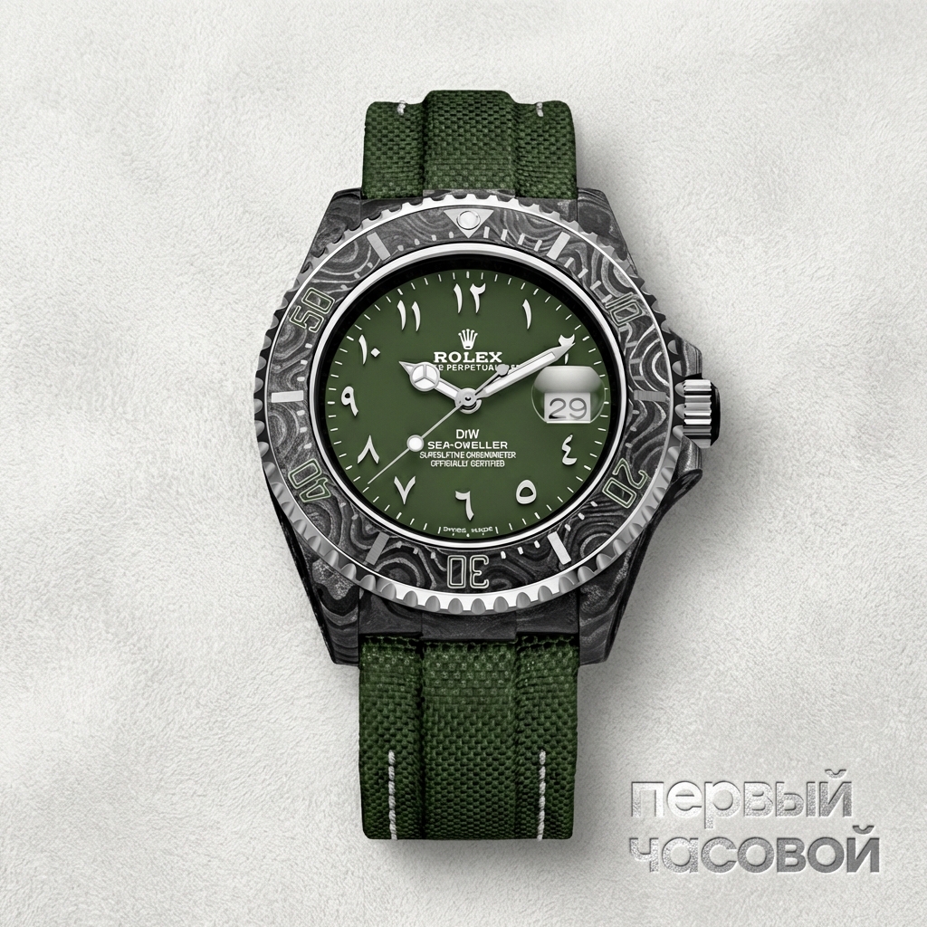Карбоновый тюнинг Rolex — это территория для тех, кто уже перерос скучный заводской сток и не считает деньги при перепродаже. Обычный стальной Sea-Dweller в размере 43 мм — это тяжелая «шайба», которая к вечеру ощутимо тянет руку. DiW решают главную эргономическую проблему модели, пересаживая механику в невесомый карбон.