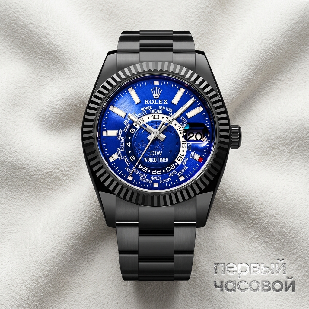 Сразу к делу: перед нами не стоковый экземпляр, а проект от DiW, построенный на базе Sky-Dweller. Это меняет правила игры. Технически вы получаете, пожалуй, самый совершенный механизм в классе — калибр 9001. Годовой календарь, который нужно корректировать всего раз в год в феврале, и GMT — это функциональный максимум, который реально полезен, а не просто усложняет обслуживание. Стальной корпус 42 мм ощущается на руке массивно, это не костюмник под узкую манжету, а серьезный инструмент, требующий уверенного запястья.