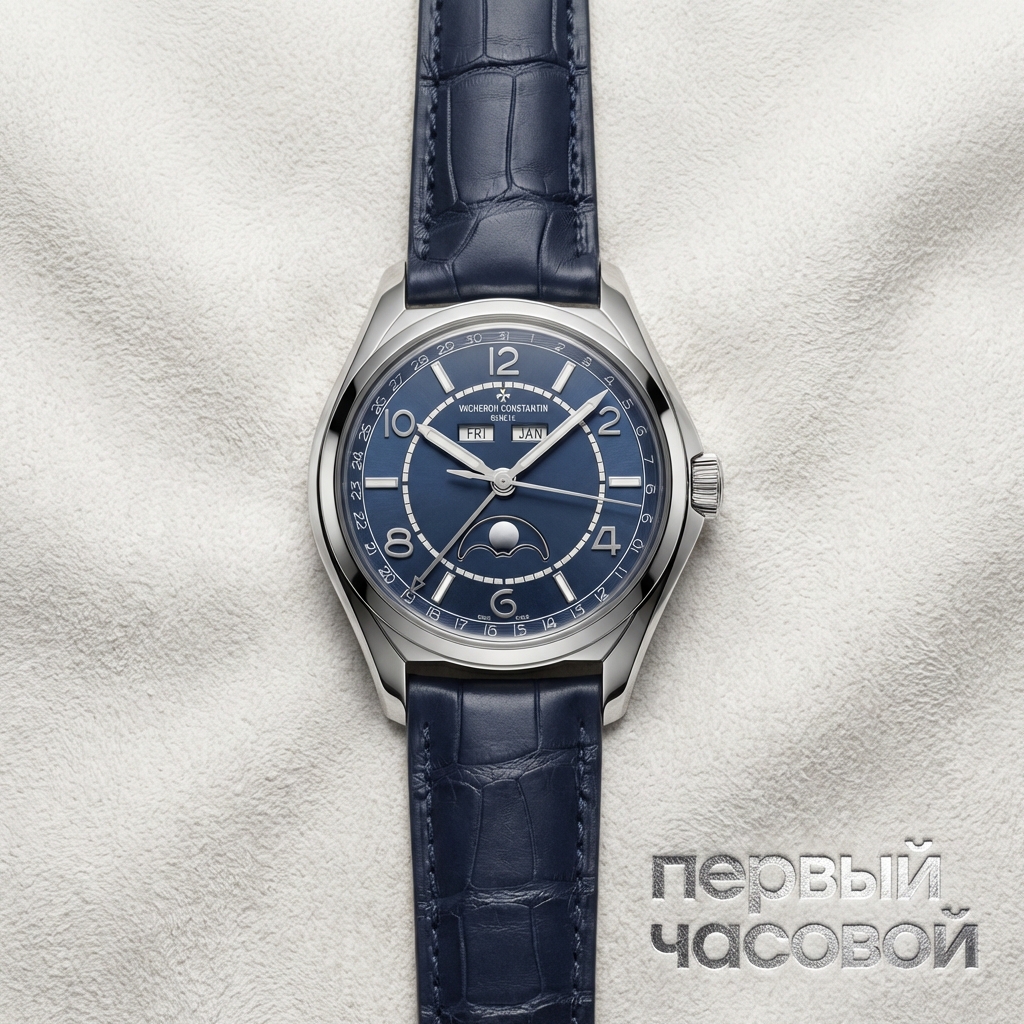 Vacheron Constantin Fiftysix Day-Date представляет собой академический пример нео-винтажного дизайна, базирующийся на историческом референсе 6073 1956 года. Архитектура стального корпуса диаметром 40 мм отличается сложной геометрией ушек, профиль которых воспроизводит ветви Мальтийского креста — фирменного геральдического символа мануфактуры. Секторный циферблат глубокого синего оттенка (Petrol Blue) разделен на зоны с различной финишной отделкой: опаловый центр гармонично контрастирует с сатинированным внешним кольцом, создавая эффект объема под коробчатым сапфировым стеклом.