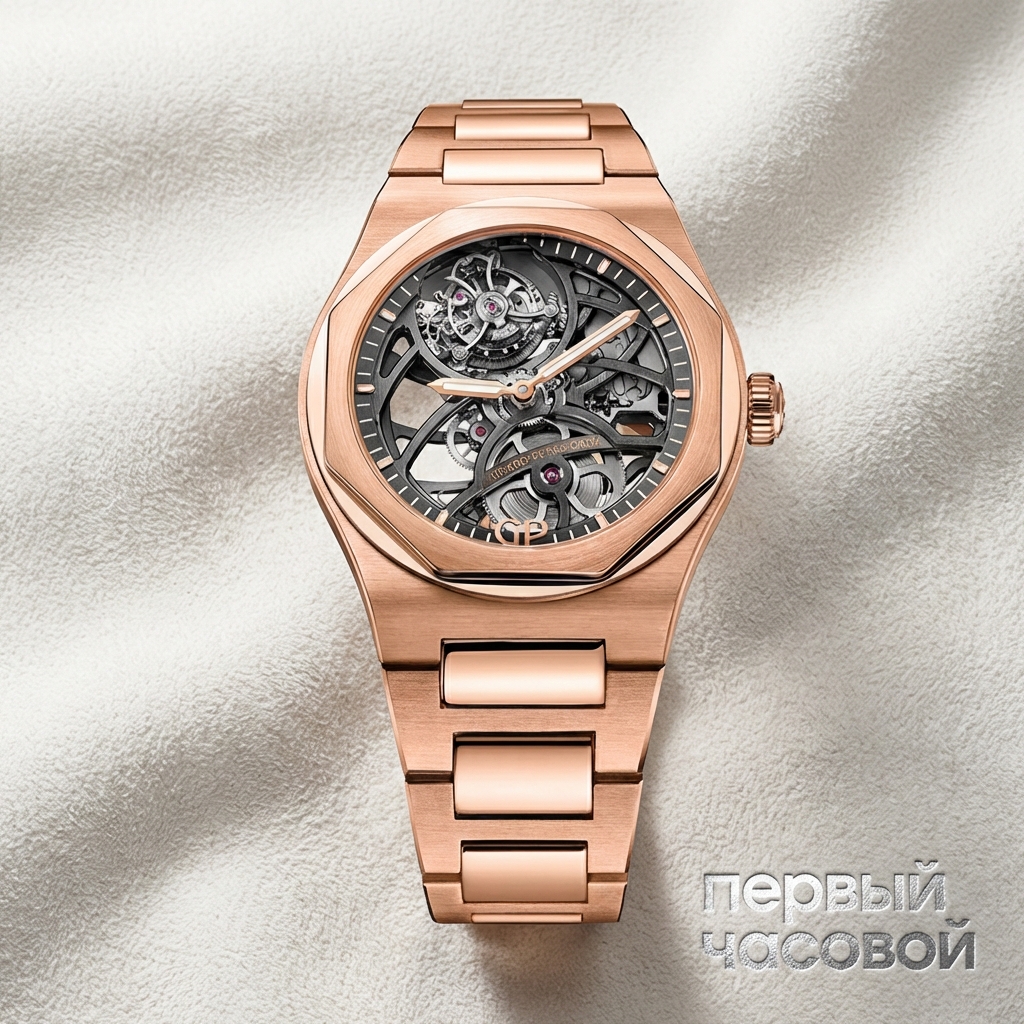 Основой технической композиции служит мануфактурный Калибр GP09520-0001 с автоподзаводом. Инженеры расположили микро-ротор коаксиально под заводным барабаном, что позволило сохранить полную прозрачность механизма без ущерба для функциональности. В положении «6 часов» находится минутный турбийон, каретка которого состоит из 79 компонентов и весит всего 0,25 грамма. Наличие интегрированного браслета из розового золота придает модели архитектурную целостность и значительный физический вес, подчеркивая статус изделия.
