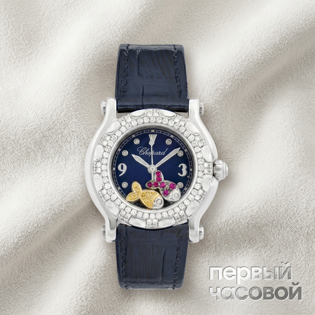 Это тот самый случай, когда маркетинг победил часовое искусство, и для конечного потребителя это даже хорошо. Квадратный Happy Sport — это неубиваемая классика женского люкса, где кварцевый механизм внутри — скорее плюс, чем минус: не нужно заморачиваться с виндером и репассажем механики, часы работают по принципу «надела и забыла». Стальной корпус в размере 26 мм универсален, сапфир отлично сопротивляется царапинам, а плавающие бриллианты делают эту модель узнаваемой с трех метров.