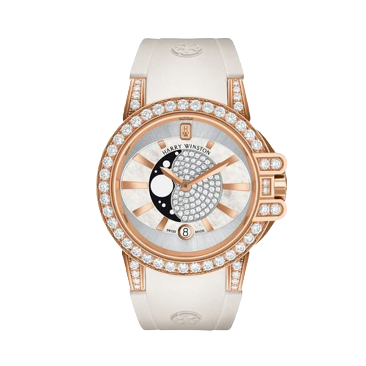 Купить в наличии в Москве Harry Winston Ocean Lady Moon Phase OCEQMP36RR003 можно прямо сейчас в "Первом Часовом Магазине". Мы гарантируем, что эти часы станут вашим верным спутником на долгие годы, а наши специалисты всегда готовы предоставить вам профессиональное обслуживание и поддержку. Не упустите возможность стать обладателем этого уникального шедевра и доверьте свои мечты о роскоши "Первому Часовому Магазину".