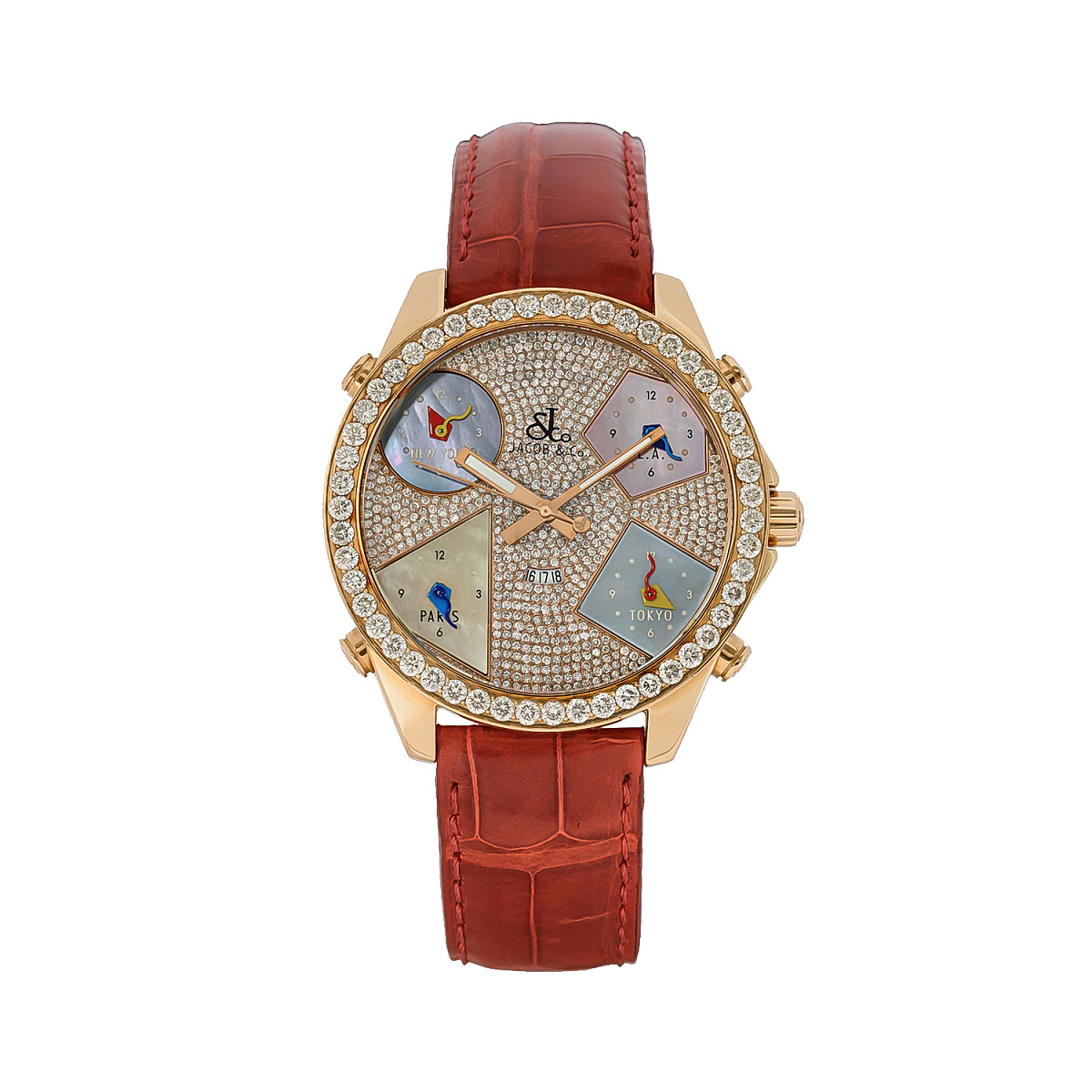 Не упустите возможность купить в наличии в Москве Jacob & Co Five Time Zone 18K Rose Gold & Diamonds и ощутить на себе всю мощь роскошного опыта, который они предлагают. Эти часы - не просто украшение, а ключ к новому уровню стиля и изысканности.