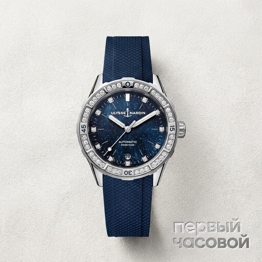 По факту носки: каучук у Улисса традиционно плотный, не трескается от пота и воды, часы фиксирует жестко. Для женской руки 39 мм — это крупно, вес будет ощущаться отчетливо. Полированные боковины корпуса гарантированно соберут микроцарапины в первые же недели. Сапфир толстый, убить его сложно. Что касается денег — женский сегмент с камнями теряет в цене при выходе из бутика катастрофически быстро. Ликвидность у таких моделей средняя, поэтому брать их стоит исключительно на вторичке, чтобы кто-то другой уже оплатил маркетинговую наценку. Наличие коробки и документов, как в данном случае, делает сделку прозрачнее и упростит продажу в будущем, если часы надоедят.