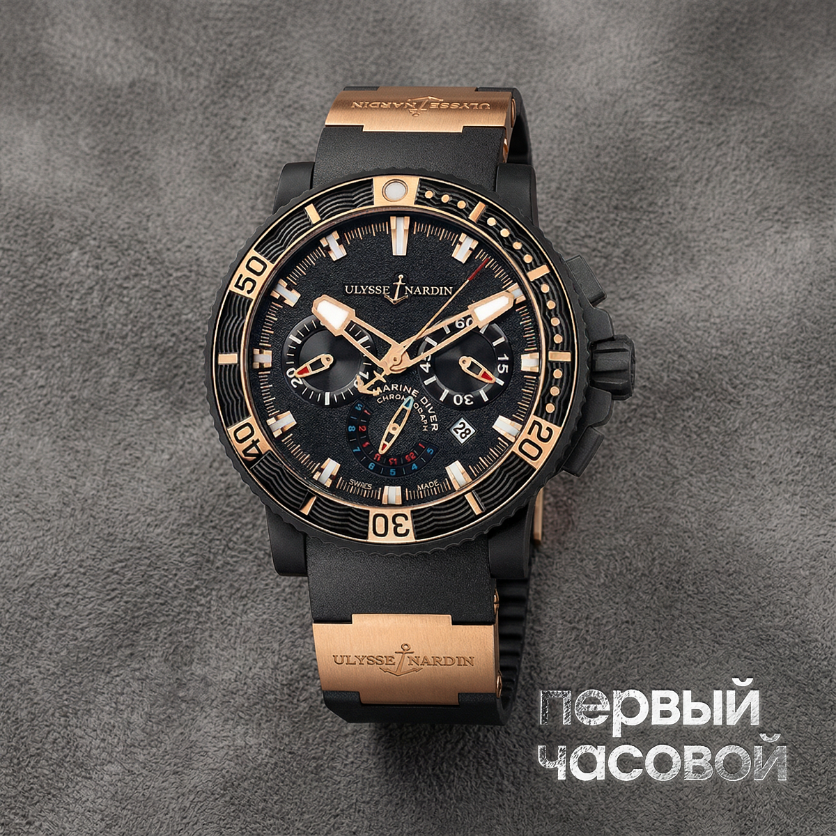«Давайте честно: Улисс Нардин всегда умел делать «инструменты», а не просто блестящие аксессуары, и этот Marine Diver Chronograph — отличное тому подтверждение. Корпус 46 мм — это серьезный размер, такие часы нужно мерить, потому что на тонком запястье они могут смотреться как будильник, но каучук грамотно балансирует вес стали, так что носить их реально удобно. Здесь стоит калибр UN-118, и это то, за что бренд уважают: надежный «трактор» с кремниевыми технологиями, который не подведет даже если вы решите ударить ими об косяк.