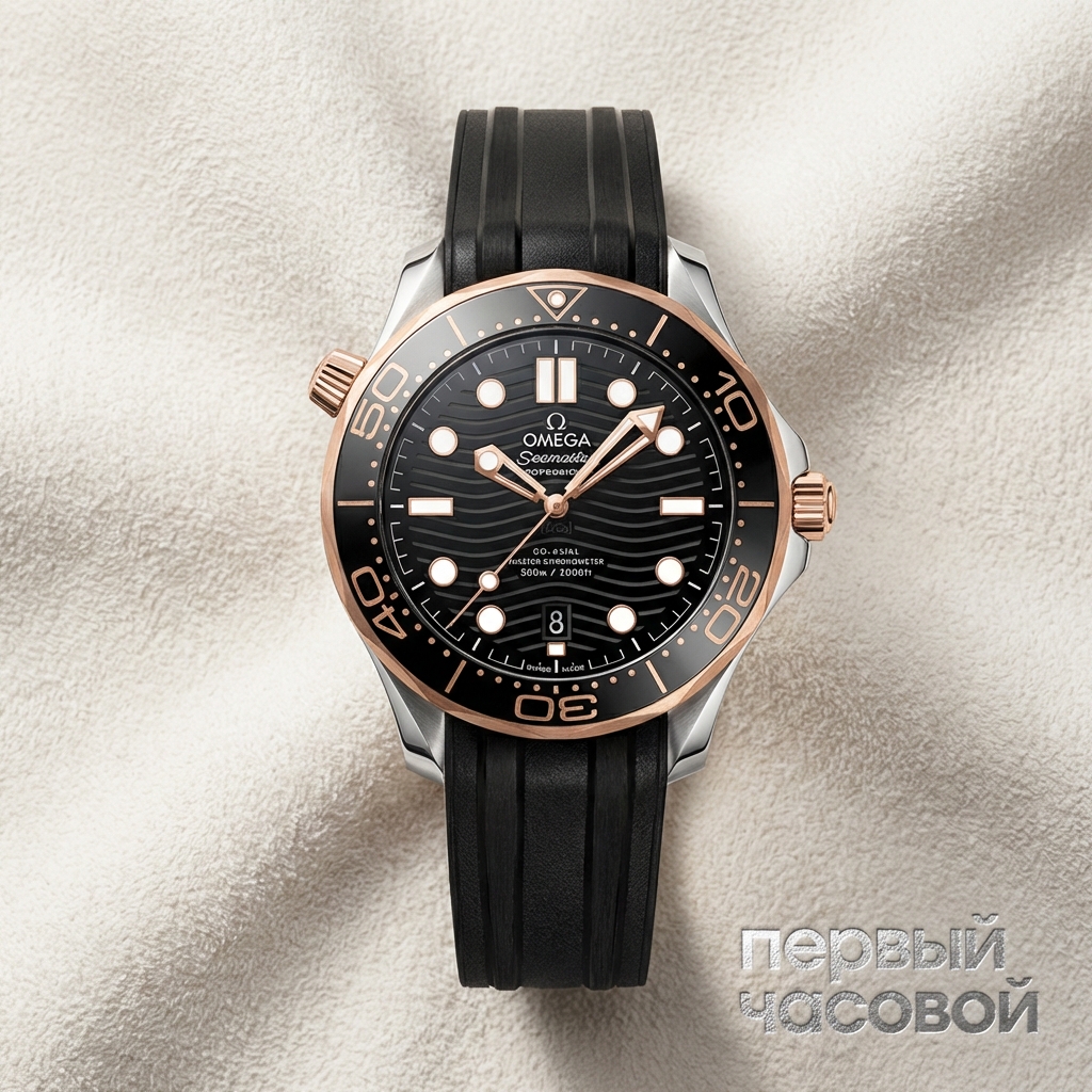 Честный биколор на каждый день. Это актуальная итерация легендарного дайвера, где Омега наконец-то исправила ошибки прошлых поколений и добавила статусности за счет золота Sedna. Сразу к делу: каучук здесь — это спасение, так как родной стальной браслет у этой модели тяжелый и не имеет сужения к застежке, а резина делает часы на запястье практически незаметными, несмотря на 42 мм. Технически к калибру 8800 вопросов нет вообще — это один из самых надежных «тракторов» в индустрии с реальной защитой от магнетизма, а не на бумаге. Золото на безеле и заводных головках придает часам вес в прямом и переносном смысле, но керамический циферблат остается главным героем, он не выцветает и не царапается. С точки зрения денег — это разумная покупка: вы получаете технологии, которые у конкурентов стоят в два раза дороже, при этом модель сохраняет адекватную остаточную стоимость, если не бить ее об дверные косяки. Надежный вариант для тех, кто перерос обычную сталь, но не готов к полностью золотым часам.