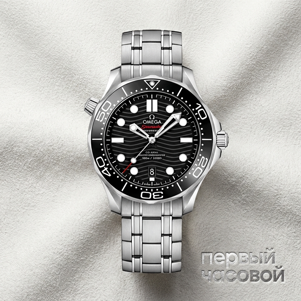Omega Seamaster Diver 300M Co-Axial Master Chronometer представляет собой эталонную эволюцию культовой дайверской линейки, сохраняющую верность историческому коду 1993 года при полном техническом переосмыслении. Корпус диаметром 42 мм выполнен из нержавеющей стали с прецизионным чередованием сатинированных и полированных граней, формирующих сложную световую архитектуру. Центральным элементом композиции выступает циферблат из полированной черной керамики [ZrO2], декорированный методом лазерной абляции для создания глубокого рельефного узора в виде волн. Скелетонизированные стрелки и накладные индексы с родиевым покрытием заполнены люминесцентным составом Super-LumiNova, обеспечивающим мгновенную считываемость показаний.