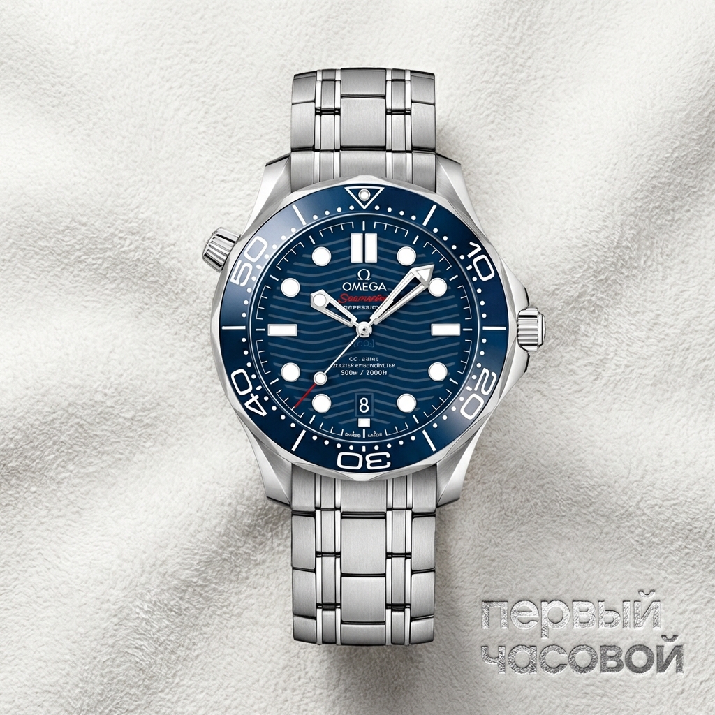 Omega Seamaster Diver 300M представляет собой современную эволюцию профессионального инструмента для глубоководных погружений, сохранившую ключевые коды ДНК коллекции 1993 года. Архитектура корпуса диаметром 42 мм выполнена из нержавеющей стали, демонстрируя сложное чередование сатинированных граней и полированных акцентов. Визуальной доминантой выступает циферблат из полированной синей керамики [ZrO2], декорированный лазерной гравировкой волнообразного узора. Апертура даты расположена в положении «6 часов», обеспечивая визуальную симметрию, а скелетонизированные стрелки и рельефные индексы с родиевым покрытием заполнены люминесцентным составом Super-LumiNova для читаемости в условиях отсутствия освещения.