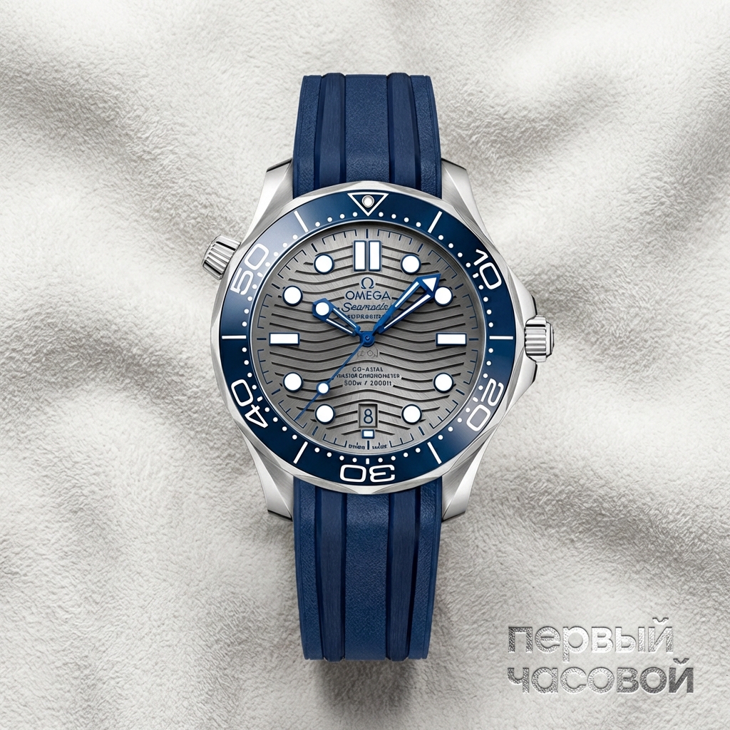 О цвете и восприятии. Перед нами одна из самых удачных и недооцененных цветовых вариаций текущего поколения Seamaster 300M. Сочетание серого керамического циферблата с синим безелем вживую выглядит гораздо сложнее и «техничнее», чем стандартные синие или черные референсы. Серый цвет здесь работает как хамелеон, меняя оттенок от стального до почти зеркального в зависимости от освещения, что визуально роднит модель с более дорогими титановыми версиями.