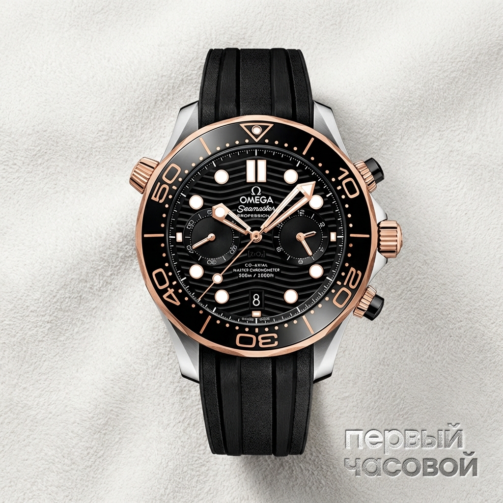Omega Seamaster Diver 300M Chronograph представляет собой монументальный пример современной морской хронометрии, где функциональность профессионального инструмента соединена с архитектурной сложностью комбинированных материалов. Корпус диаметром 44 мм выполнен в биколорном исполнении, объединяющем нержавеющую сталь и запатентованный 18-каратный сплав Sedna Gold, который отличается от стандартного розового золота уникальным красноватым оттенком и повышенной устойчивостью к потускнению.