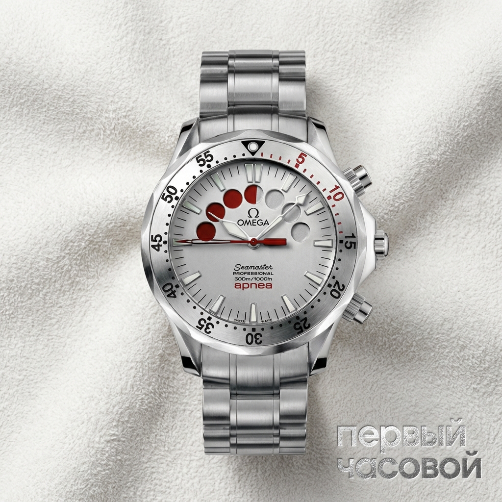 Это, пожалуй, самый нестандартный Seamaster, который можно найти на вторичке. Модель Apnea, сделанная под Жака Майоля, интересна тем, что здесь убрали все лишнее и добавили функцию, которая в реальной жизни никому, кроме ныряльщиков, не нужна, но выглядит это чертовски эффектно. Семь кружков, меняющих цвет, превращают циферблат в приборную панель. С точки зрения механики, калибр 3601 — это надежный трактор с модульной надстройкой, обслуживание которого не разорит, но потребует грамотного мастера.