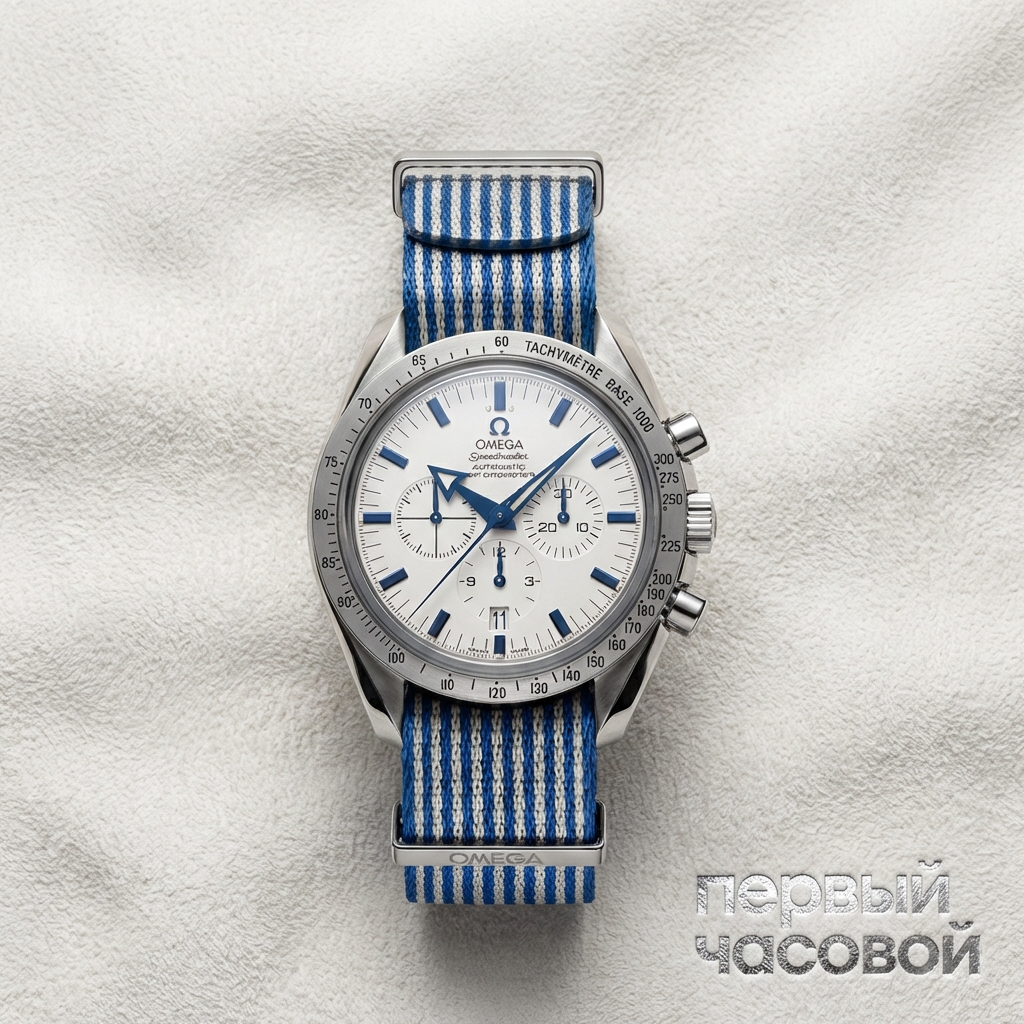 Сразу к делу: перед нами тот случай, когда референс интереснее, чем кажется на первый взгляд, несмотря на путаницу в описаниях. Это Broad Arrow на базе калибра 3303 — механизма с колонным колесом на архитектуре Piguet, который технически превосходит стандартные «лунные» калибры по плавности работы и точности, хотя и требует более квалифицированного сервиса. Белый циферблат с воронеными стрелками (blued steel) — это, пожалуй, самое нарядное и «дорогое» исполнение в линейке Speedmaster, которое вживую смотрится на голову выше обычных черных версий.