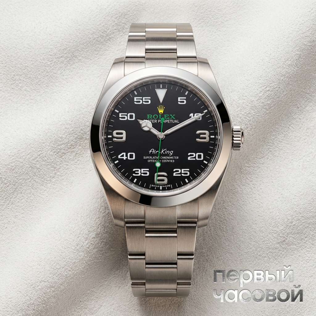 Rolex Air-King Ref. 116900 представляет собой значительное отклонение от традиционной стилистики коллекции, переходя к архитектуре инструментальных приборов. Корпус диаметром 40 мм выполнен из стали Oystersteel и конструктивно идентичен модели Milgauss, включая внутренний экран из ферромагнитных сплавов для защиты калибра 3131 от магнитных полей. Данное инженерное решение обуславливает увеличенную толщину профиля и ощутимый вес изделия на запястье, создавая впечатление монолитности.