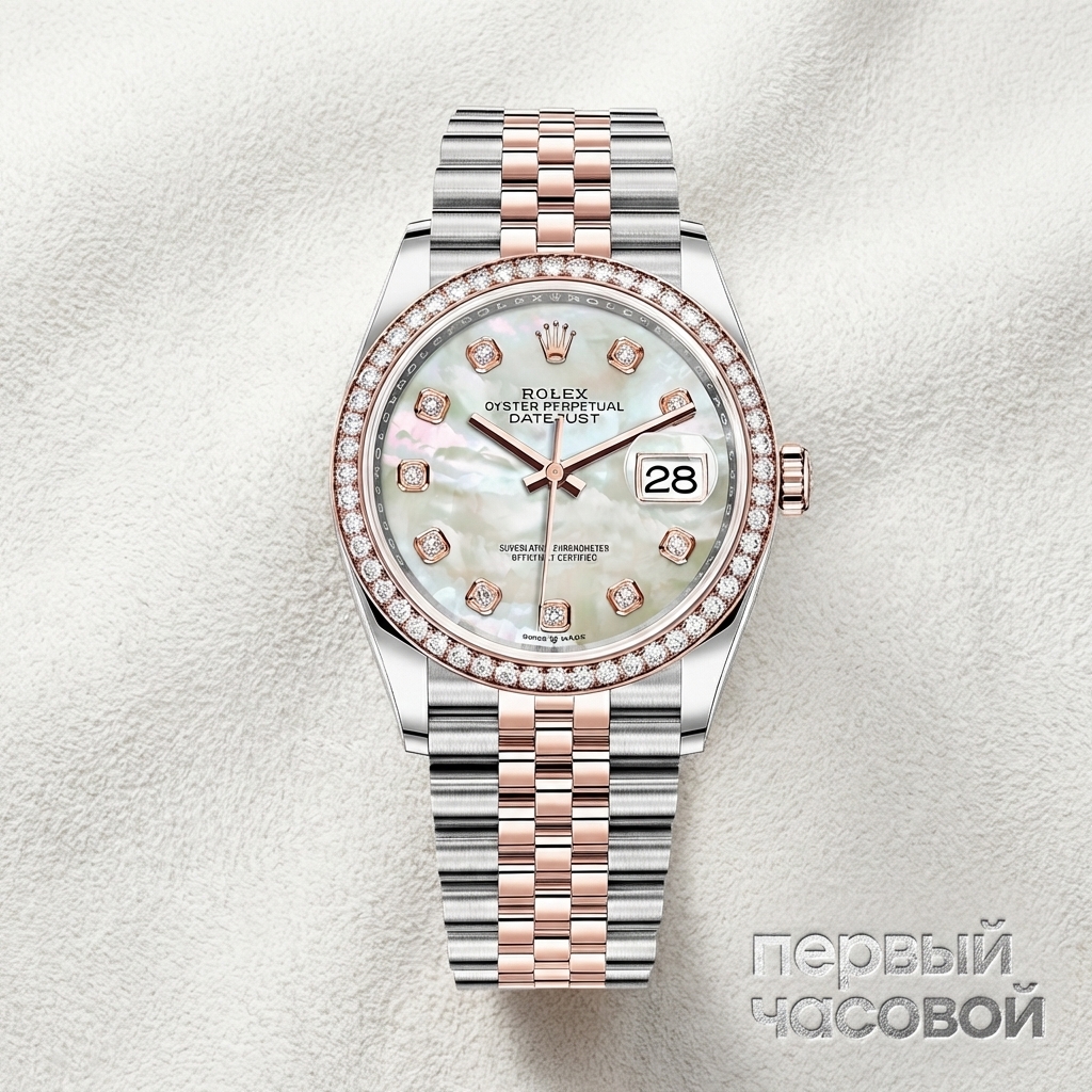 Rolex Datejust 36 представляет собой канонический образец биметаллической архитектуры, объединяющий запатентованный сплав Oystersteel и 18-каратное розовое золото Everose.