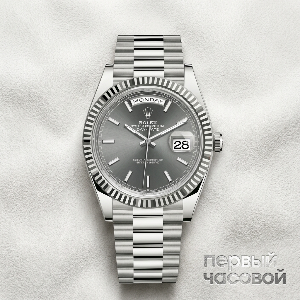 Day-Date 40 в белом золоте с оливковым циферблатом — это классический пример «stealth wealth» или скрытого богатства. Для неподготовленного глаза это просто стальные часы, и только вес драгоценного металла на запястье дает владельцу то самое тактильное ощущение статуса. Оливковый циферблат здесь играет ключевую роль: это самый востребованный цвет для данного референса, который держит цену на вторичном рынке лучше скучных белых или черных вариаций. Теперь к фактам по конкретному лоту. Ситуация нестандартная: часы абсолютно новые, «в пленках», но голые — без коробки и карт. Для инвестора это минус, так как «фулл сет» всегда ликвиднее. Однако для человека, который берет часы именно для себя, это подарок. Вы получаете новые золотые часы, не переплачивая за картон и пластик, которые все равно валяются в сейфе. Калибр 3255 — надежный трактор, проблем с ним не будет. Белое золото — металл мягкий, полированные центральные звенья браслета President неизбежно покроются «паутинкой» через месяц активной носки, к этому нужно быть готовым. Это часы сугубо для эксплуатации, а не для музейного хранения.