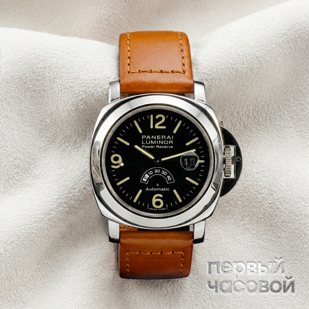 Panerai Luminor Power Reserve представляет собой значимый образец раннего периода современной истории бренда, относящийся к редкой серии А. Архитектура корпуса диаметром 44 мм выполнена из полированной нержавеющей стали AISI 316L, демонстрируя характерную подушкообразную геометрию с запатентованным устройством защиты заводной головки Crown Protecting Device. Массивный безель и прямые ушки формируют узнаваемый монументальный силуэт, свойственный военному наследию марки.