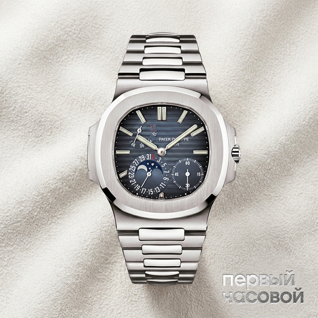 Мнение байера: Это самая противоречивая и одновременно притягательная модель в линейке Nautilus. Пока рынок сходил с ума по базовому трехстрелочнику 5711, опытные коллекционеры часто выбирали 5712 из-за того, что здесь вы платите не просто за хайп, а за реальную механику с микро-ротором. На запястье часы ощущаются иначе, чем выглядят на фото: благодаря калибру 240 они экстремально тонкие и садятся под любую манжету, баланс на руке идеальный. Однако стальной безель ловит царапины от воздуха, это нужно принять как данность или держать часы в сейфе. Водозащита здесь снижена до 60 метров, заводная головка не завинчивается, поэтому, несмотря на «спортивный» статус и стальной браслет, контакт с водой этим часам противопоказан. Это актив высокой ликвидности для тех, кто понимает, что асимметрия циферблата — это не баг, а фича высокой механики Patek Philippe.