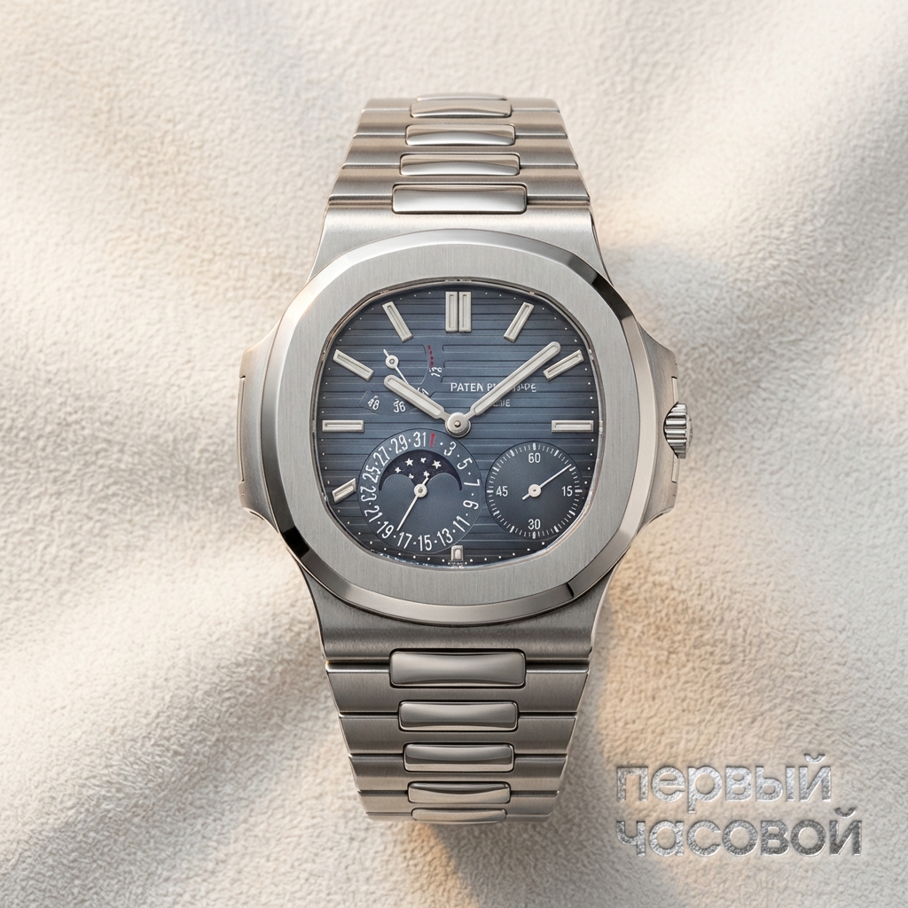 5712 — это выбор тех, кто перерос обычный трехстрелочник 5711 и ищет в Nautilus не только узнаваемый безель, но и механическую суть. Главное преимущество этого референса — микророторный калибр 240, который делает часы феноменально тонкими; они проваливаются под манжету любой сорочки, чего не скажешь о многих спортивных моделях. Асимметрия циферблата, которая многих пугает на рендерах, в жизни добавляет часам характера и технической «злости». Сталь здесь обрабатывается великолепно, но полированные центральные звенья браслета — это магнит для царапин, так что «паутинка» появится в первую неделю носки. Конкретно этот экземпляр идет без коробки, что для инвестора минус, но для человека, берущего часы на руку — отличный повод сбить цену, так как наличие документов критичнее коробки. Это высоколиквидный инструмент для ежедневной эксплуатации.