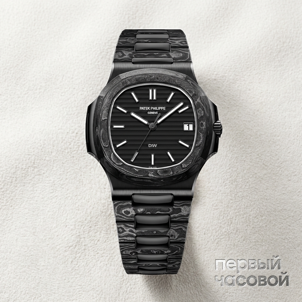 DiW Carbon Nautilus. Данная модель представляет собой радикальную переработку классической архитектуры, выполненную ателье Designa Individual Watches. Корпус диаметром 40 мм изготовлен из высокотехнологичного углеродного волокна, что кардинально меняет физику взаимодействия с объектом: привычная тяжесть стали уступает место экстремальной легкости композита. Характерная структура карбона создает уникальный визуальный паттерн, поглощающий свет и акцентирующий внимание на геометрии безеля, лишенного привычного металлического блеска.