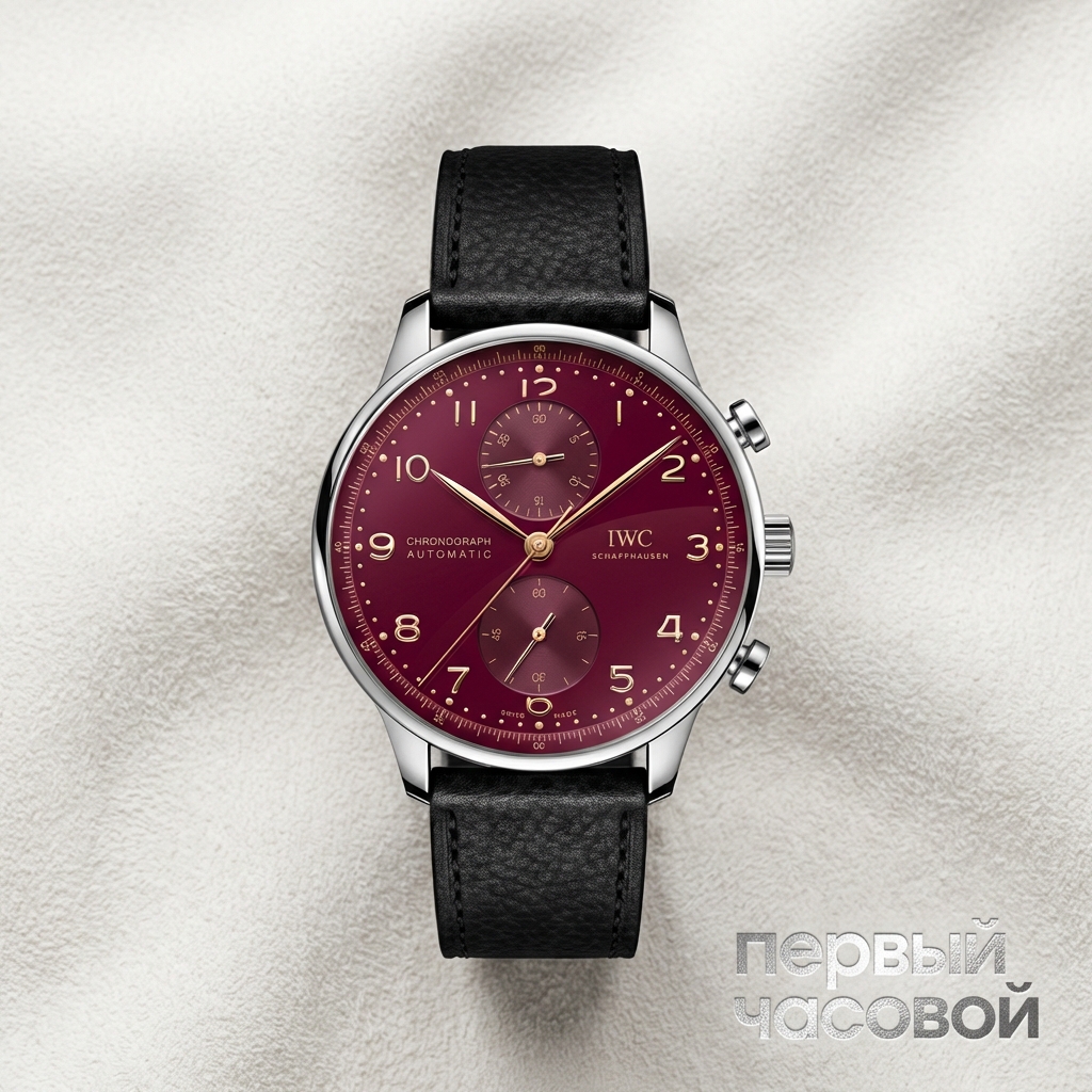Классический «Португайзер» в нетривиальном исполнении. Перед нами референс, который технически повторяет удачную 41-миллиметровую платформу IWC, но выигрывает за счет цвета. Бургунди — это способ уйти от скучной офисной серости, оставаясь в рамках приличия. Стальной корпус здесь работает как рама для циферблата: безеля почти нет, поэтому часы на руке кажутся крупнее заявленных 41 мм. Это нужно учитывать, если у вас запястье меньше 17 см.