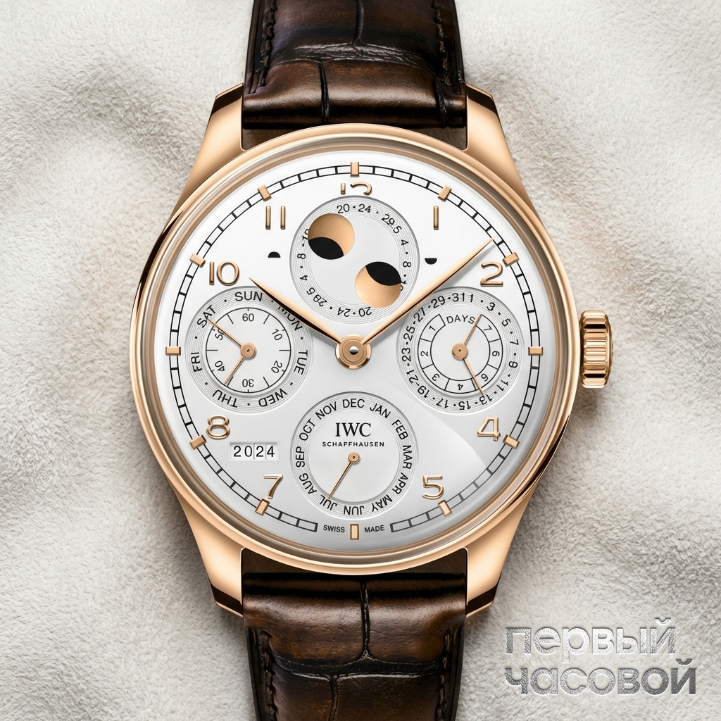 IWC Portugieser Perpetual Calendar Digital Date-Month представляет собой выдающийся образец высокого часового искусства, выпущенный к 75-летнему юбилею знаковой коллекции мануфактуры из Шаффхаузена. Архитектура корпуса диаметром 44,4 мм выполнена из 18-каратного розового золота, демонстрируя массивный профиль с тщательно полированными и сатинированными поверхностями.