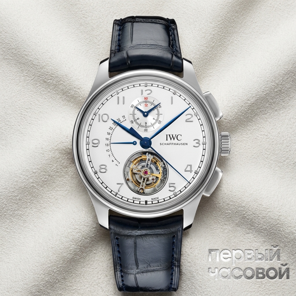 Сразу к фактам: перед нами платиновая «шайба» размером 43,5 мм. На запястье этот IWC ощущается как кастет — платина металл плотный, тяжелый, и эргономика здесь проигрывает физике. Это не те часы, которые забываешь на руке. Механизм 51900 — это высшая лига IWC, система Пеллатона надежная как автомат Калашникова, а 7 дней запаса хода позволяют класть их в сейф на неделю без виндера. Турбийон здесь парящий, выглядит эффектно, но с точки зрения практической точности в наручных часах — это скорее дорогая игрушка, чем необходимость.