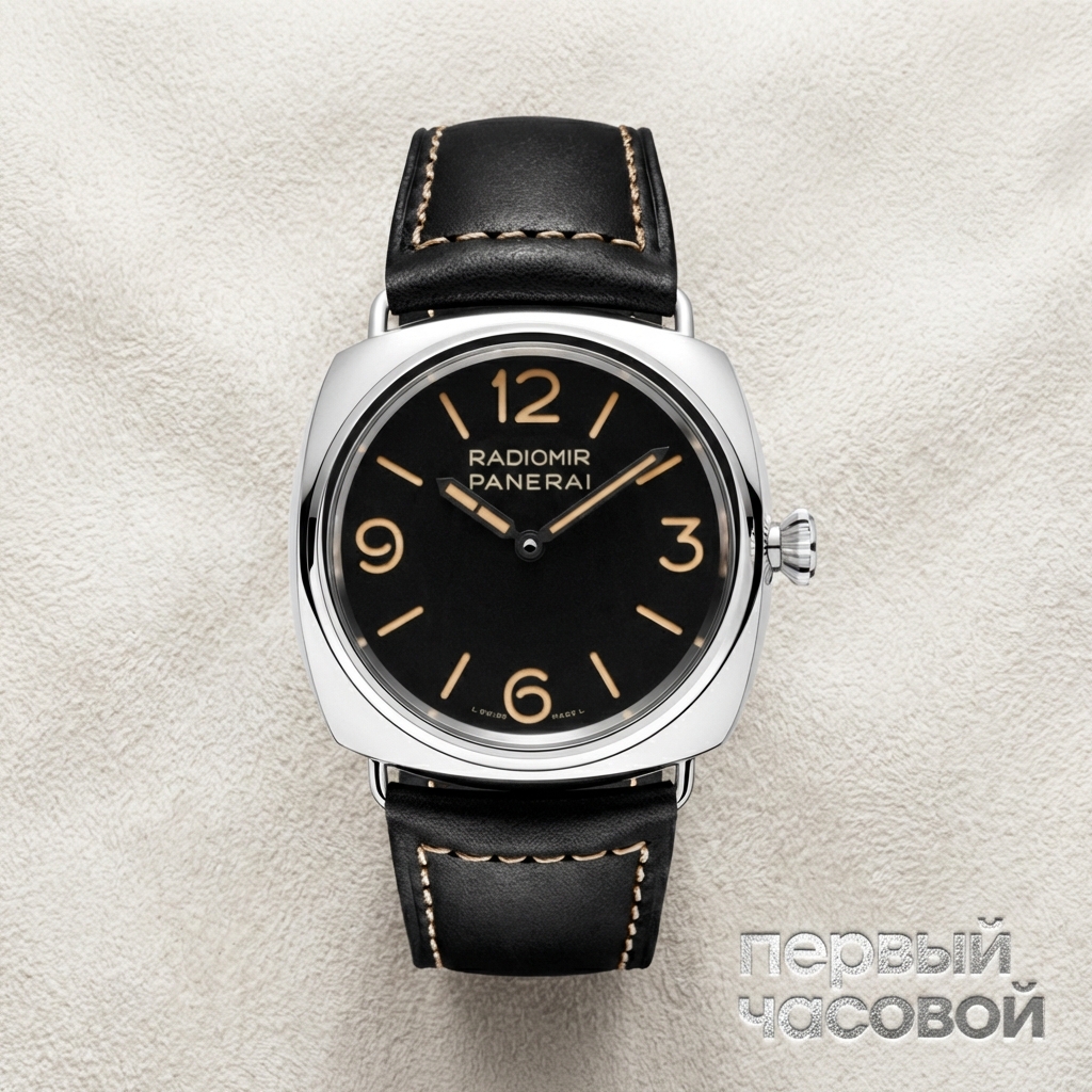 Panerai Radiomir Base Logo представляет собой современную интерпретацию исторического инструментария, разработанного флорентийской мануфактурой для подводных диверсантов Королевских ВМС Италии. Данный референс сохраняет аутентичную подушкообразную архитектуру корпуса диаметром 45 мм, выполненного из полированной стали AISI 316L. Отличительной конструктивной особенностью являются съемные проволочные ушки крепления ремешка (Wire Loop Lab), запатентованные в 1938 году, что обеспечивает визуальную легкость силуэта в отличие от массивных дужек линейки Luminor.