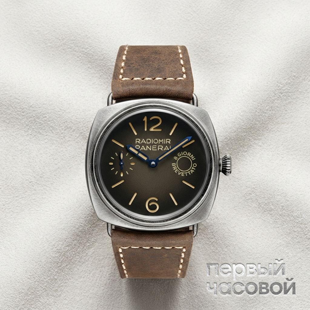 Давайте сразу к делу: перед нами классический «сэндвич» от Panerai, и здесь размер имеет значение. Корпус 45 мм — это серьезная заявка, поэтому если у вас запястье меньше 17,5 см, эти часы будут выглядеть как шайба, а проволочные ушки будут нависать над рукой. Однако, если анатомия позволяет, вы получаете один из самых харизматичных корпусов в индустрии. Главная фишка этого лота, безусловно, калибр P.5000 с запасом хода в 8 дней. Это критически важно для механики с ручным заводом: вам не нужно натирать пальцы заводной головкой каждое утро, достаточно уделить этому время раз в неделю, превращая процесс в необременительный ритуал. Отсутствие даты и лишних стрелок делает циферблат максимально чистым, что для «панеристи» часто является решающим фактором при выборе. Ценник в ритейле немалый, но с учетом восьмидневника внутри и культового статуса линейки Radiomir, это вложение в понятный, надежный и ликвидный актив, который не выйдет из моды через сезон. Это честный мужской инструмент без лишней мишуры.