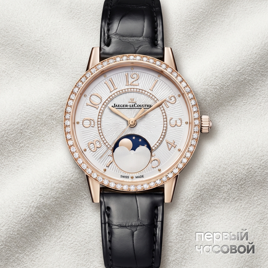 Вводные данные жесткие: перед нами абсолютно новые золотые часы в пленках, но «голые» — без коробки и документов. С точки зрения коллекционной ценности это минус тридцать процентов к привлекательности, но для прагматика — это джекпот. Вы получаете розовое золото JLC и бриллианты с дисконтом, который невозможен в бутике. Модель Rendez-Vous в размере 34 мм садится на запястье идеально, ушки короткие, корпус не перевешивает. Механизм здесь стоит надежный, это не капризный ультратонкий калибр, а нормальный «трактор» от Жеже, который будет ходить годами без репассажа. Отсутствие бумаг в данном случае компенсируется заводскими пленками: мы точно видим, что часы не полировались, не вскрывались и не носились. Это вариант не для перепродажи через год (потеряете на отсутствии комплекта), а для того, чтобы носить тяжелый люкс здесь и сейчас, не переплачивая за картон и гарантийную карту.