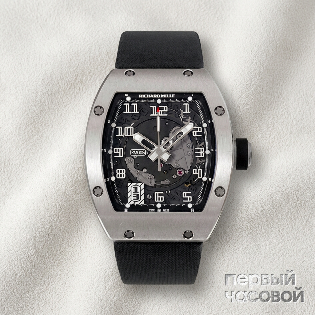 Сразу к делу: перед нами самый доступный входной билет в высшую лигу Richard Mille. RM 005 — это база, с которой начиналась современная истерия вокруг бренда, но в данном исполнении есть нюансы. Во-первых, это белое золото. Забудьте о маркетинговых сказках про «невесомые часы»: здесь вы платите за благородный металл, и вы будете чувствовать его вес на руке. С практической точки зрения золото менее утилитарно, чем титан — корпус будет ловить «паутинку» царапин, поэтому носить нужно аккуратно, если волнует товарный вид при перепродаже.