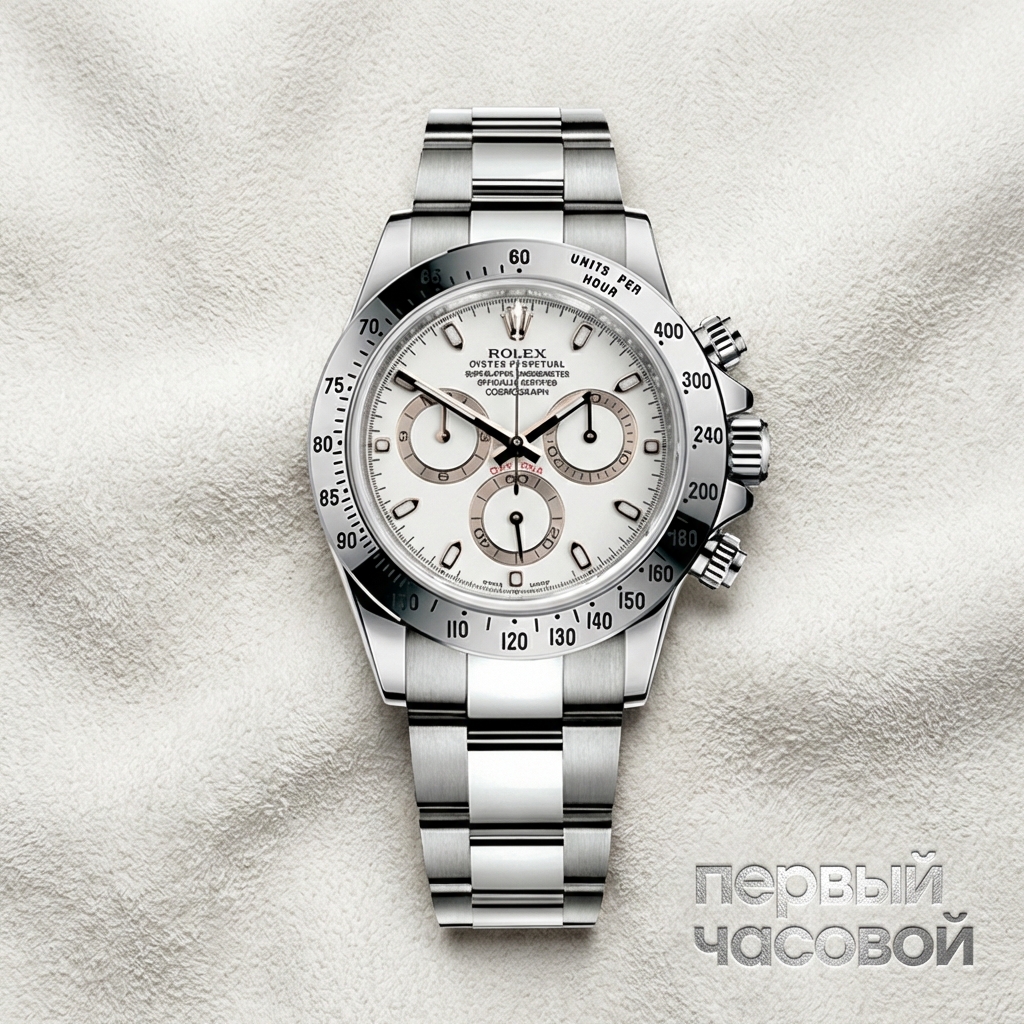 Стальная Daytona 116520 — это, пожалуй, самый понятный и ликвидный актив в часовом мире, даже если в описании лота по ошибке указан другой бренд, референс и 4130-й калибр говорят сами за себя. Это «последний из могикан» со стальным безелем, и здесь нужно быть честным: этот рант собирает царапины буквально из воздуха, но именно «паутинка» на металле отличает рабочие часы от сейфового экспоната.