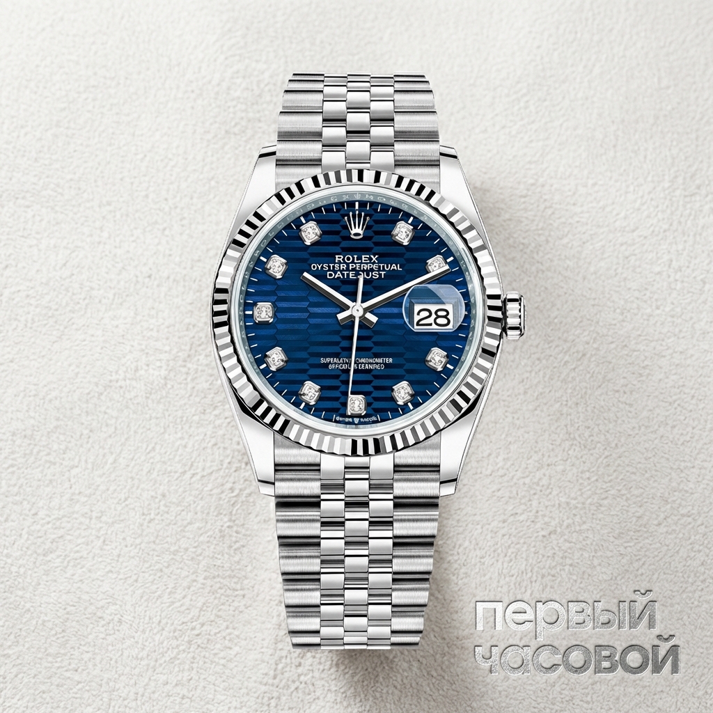 Касательно материалов: сочетание стали и белого золота выглядит дороже обычной стали, но требует понимания физики. Золотой рифленый безель — элемент мягкий. Хотя грани отлично скрывают мелкие царапины за счет игры света, при сильных ударах геометрия может пострадать, а полировка такого элемента — задача сложная. Размер 36 мм, хоть и заявлен как женский, де-факто является историческим стандартом Rolex и садится практически на любое запястье идеально.