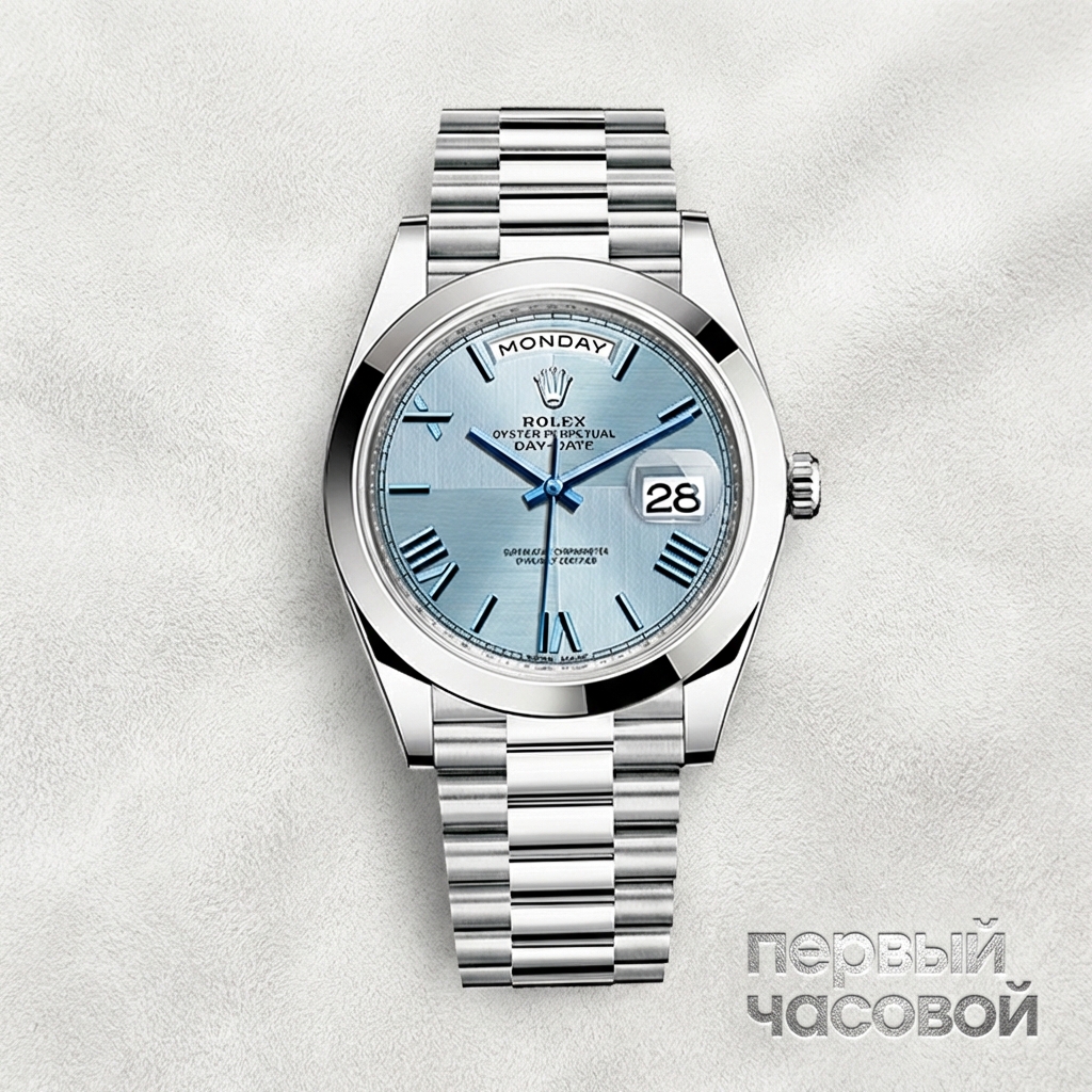 Технически здесь стоит калибр 3255 — надежный механизм нового поколения. 70 часов запаса хода — это честный weekend-proof: сняли в пятницу, надели в понедельник, и не нужно крутить заводную головку, выставляя день недели, что на Day-Date всегда лишняя возня. Гладкий безель — это маркер платины, но будьте готовы к тому, что он собирает микроцарапины быстрее, чем рифленое золото, а полировать платину — занятие сложное и дорогое. Это часы для аккуратной носки, а не для краш-тестов о дверные косяки.