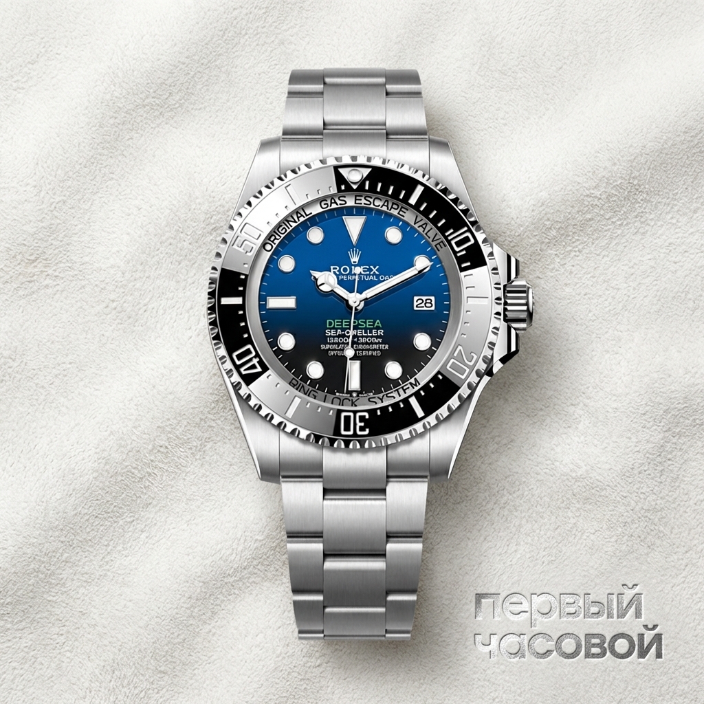 С технической точки зрения, переход на калибр 3235 закрыл главный вопрос к предыдущим поколениям — теперь мы имеем полноценные 70 часов запаса хода, что для часов выходного дня (а Deepsea часто берут именно так) является обязательным стандартом. Сапфир толстый, безель керамический — поцарапать лицевую часть сложно, но боковые грани корпуса ловят «паутинку» довольно быстро. Учитывая полный заводской комплект и состояние «новые», лот представляет собой железобетонную инвестицию: D-Blue циферблаты всегда котируются выше стандартных черных и сохраняют ликвидность на вторичном рынке.