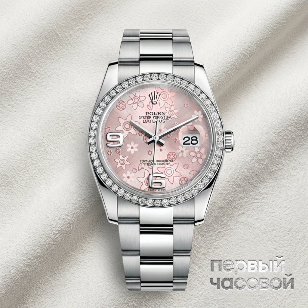 Главное здесь — заводские бриллианты на безеле и циферблат с цветочными мотивами. С точки зрения ликвидности — это палка о двух концах: «цветы» делают часы узнаваемыми, но сужают круг потенциальных покупателей при перепродаже, так как дизайн специфический. Размер 36 мм я считаю эталонным для современной женской руки — это уже не микроскопическая классика прошлого века, а полноценный аксессуар с читаемым весом. Внутри стоит неубиваемый калибр, который при должном репассаже ходит десятилетиями.