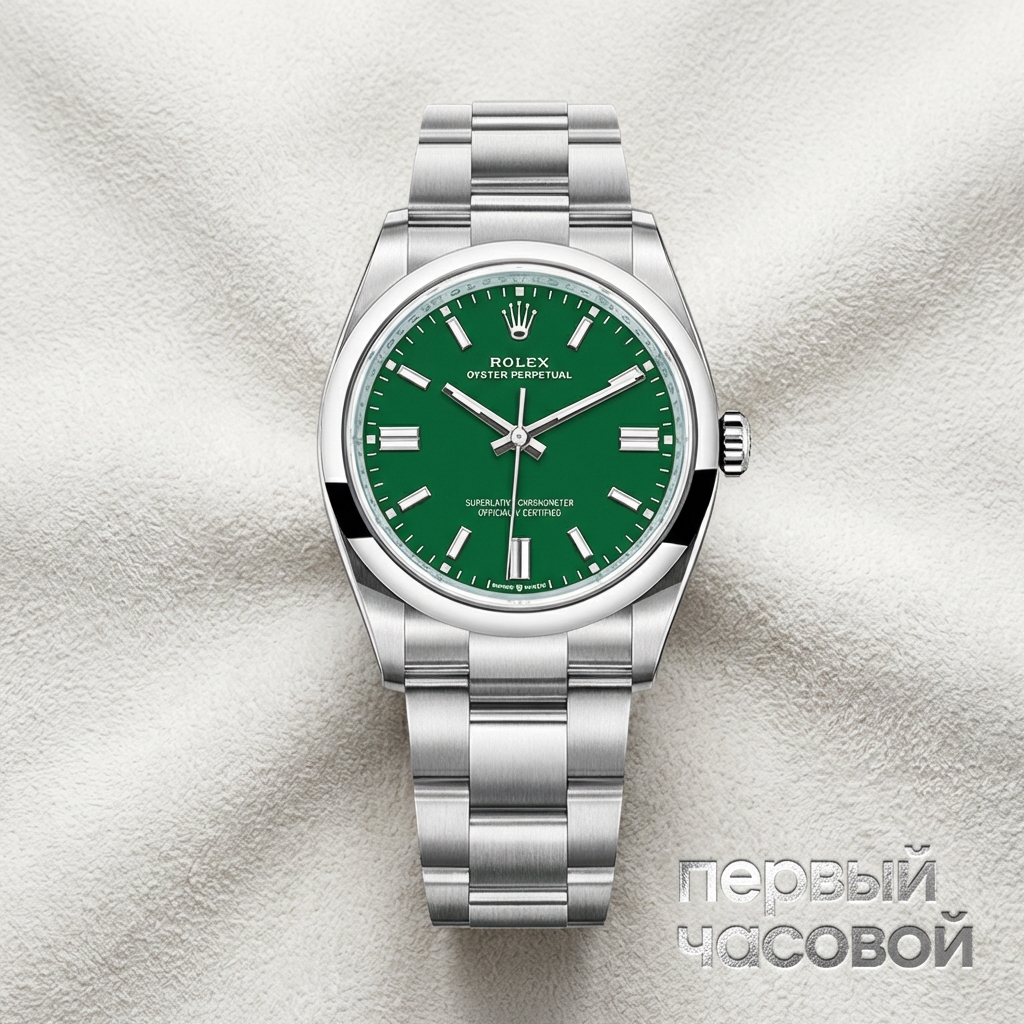 Давайте начистоту. Это та самая модель, которая в 2020 году перевернула восприятие базовой линейки Rolex. До появления этого зеленого циферблата Oyster Perpetual считались просто «входным билетом» в бренд, а теперь за этот референс на вторичном рынке идет настоящая война. Цвет здесь решает все — он достаточно яркий, чтобы быть замеченным, но достаточно строгий, чтобы не выглядеть детской игрушкой.