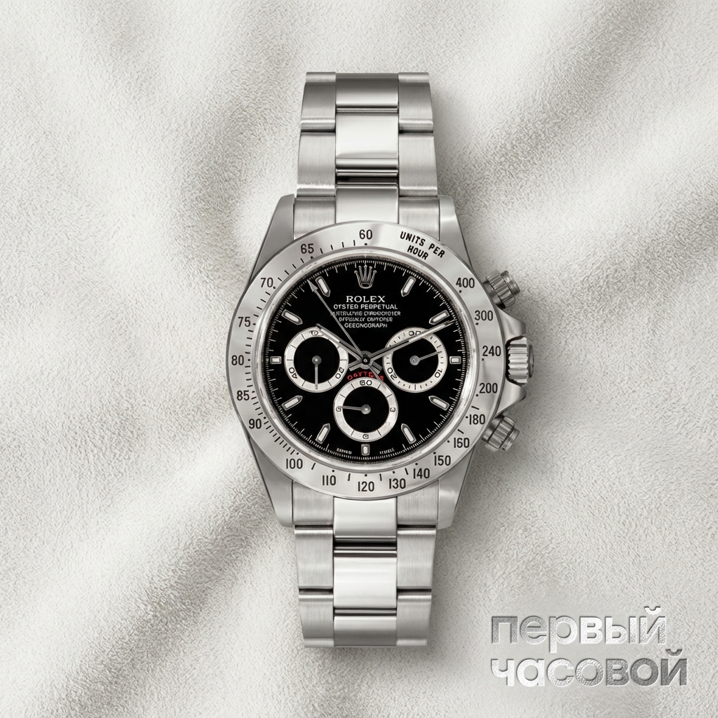 Rolex Daytona 116520 — это, пожалуй, самый честный хронограф в современной истории бренда. Перед нами «рабочая лошадка» с калибром 4130 — механизмом, который спустя двадцать лет остается эталоном надежности в индустрии. Он проще в обслуживании и надежнее, чем предыдущие версии на базе Zenith, и это факт, с которым не спорят даже фанаты винтажа. 40-миллиметровый корпус садится идеально практически на любую руку, пролезая под манжету рубашки, чего не скажешь о многих современных «шайбах».