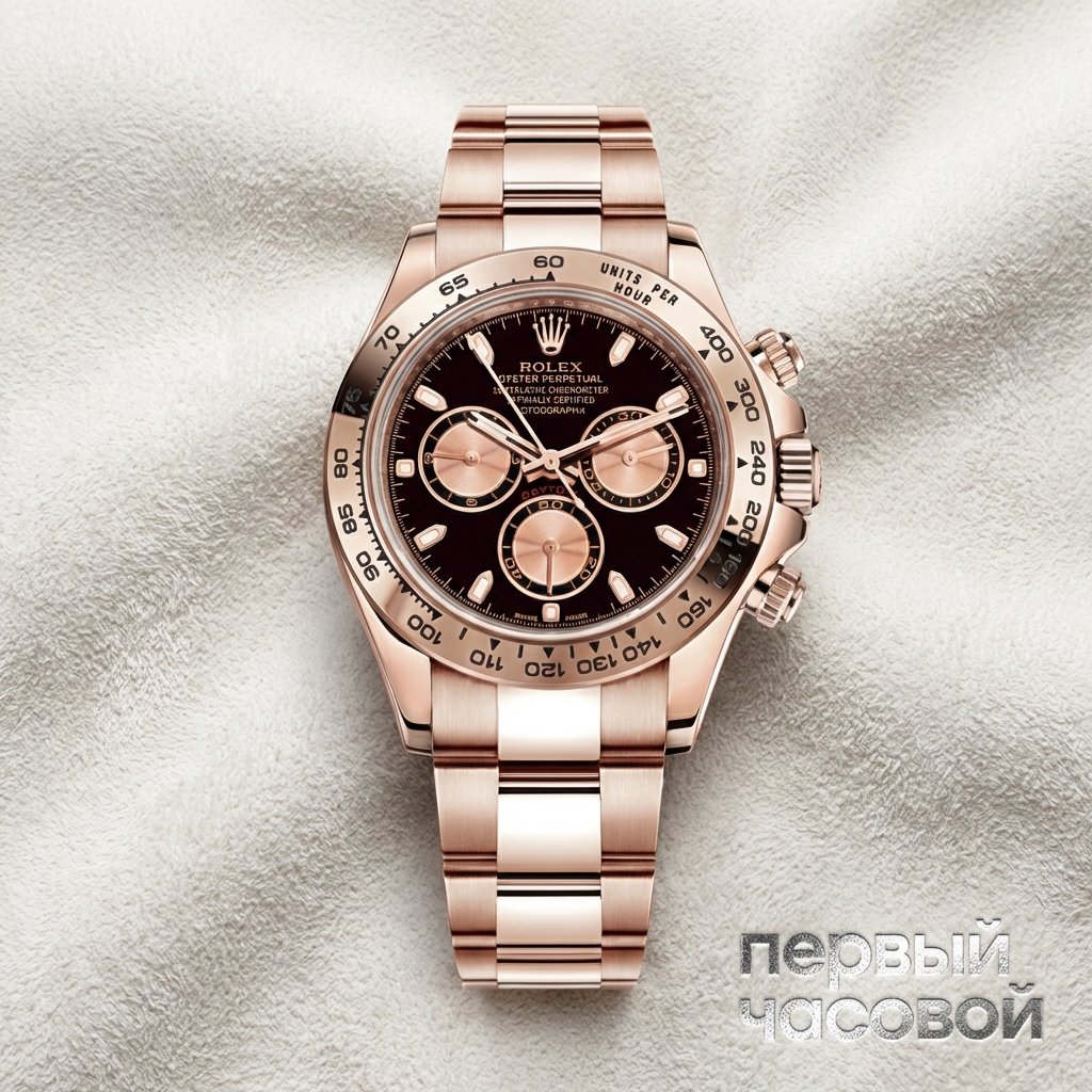 Rolex Daytona 116505 в полном золоте — это, прежде всего, вес и статус, который невозможно скрыть под манжетой. Сплав Everose выглядит благороднее обычного желтого золота, но будущий владелец должен принять неизбежное: золото мягкое. Золотой безель, в отличие от керамики, ловит царапины моментально, а полированные центральные звенья браслета быстро покрываются «паутинкой» при ежедневной носке. Технически здесь стоит калибр 4130 — абсолютно неубиваемый механизм, лучший серийный хронограф на рынке по надежности и простоте обслуживания. Касательно комплекта: отсутствие коробки для коллекционера — минус, но наличие документов — критически важный плюс, спасающий ликвидность. Это вариант сугубо для носки: вы получаете топовый референс с дисконтом за отсутствие «картона», который никак не влияет на тактильные ощущения от тяжелого золотого слитка на запястье.