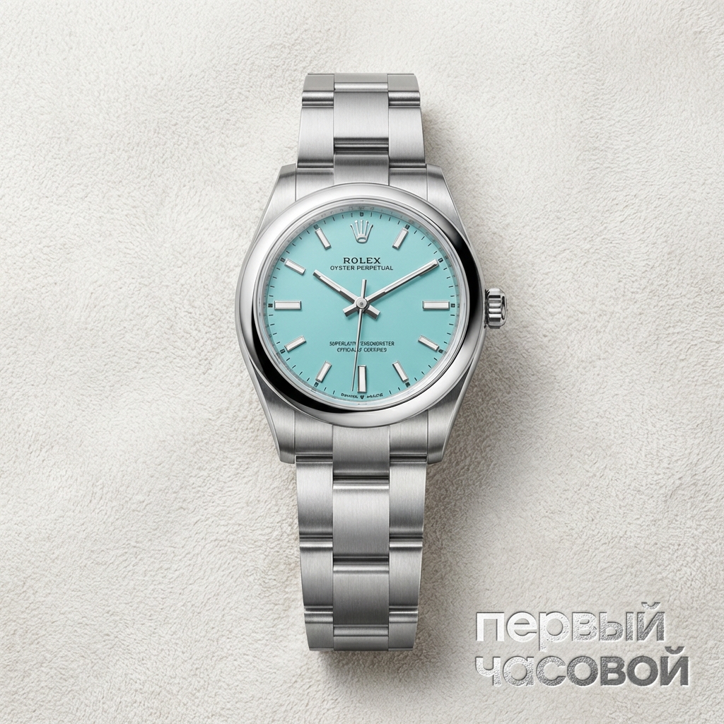 Визуальный профиль часов строится на строгом балансе сатинированных поверхностей браслета Oyster и полированных боковин корпуса, увенчанного гладким куполообразным безелем. Отсутствие апертуры даты на циферблате сохраняет симметрию и чистоту линий, акцентируя внимание на накладных часовых метках из 18-каратного золота, предотвращающего потускнение. Техническая часть представлена мануфактурным калибром 2232 — механизмом с автоподзаводом, оснащенным запатентованной кремниевой спиралью Syloxi и противоударной системой Paraflex, что обеспечивает высокую хронометрическую точность и запас хода в 55 часов.